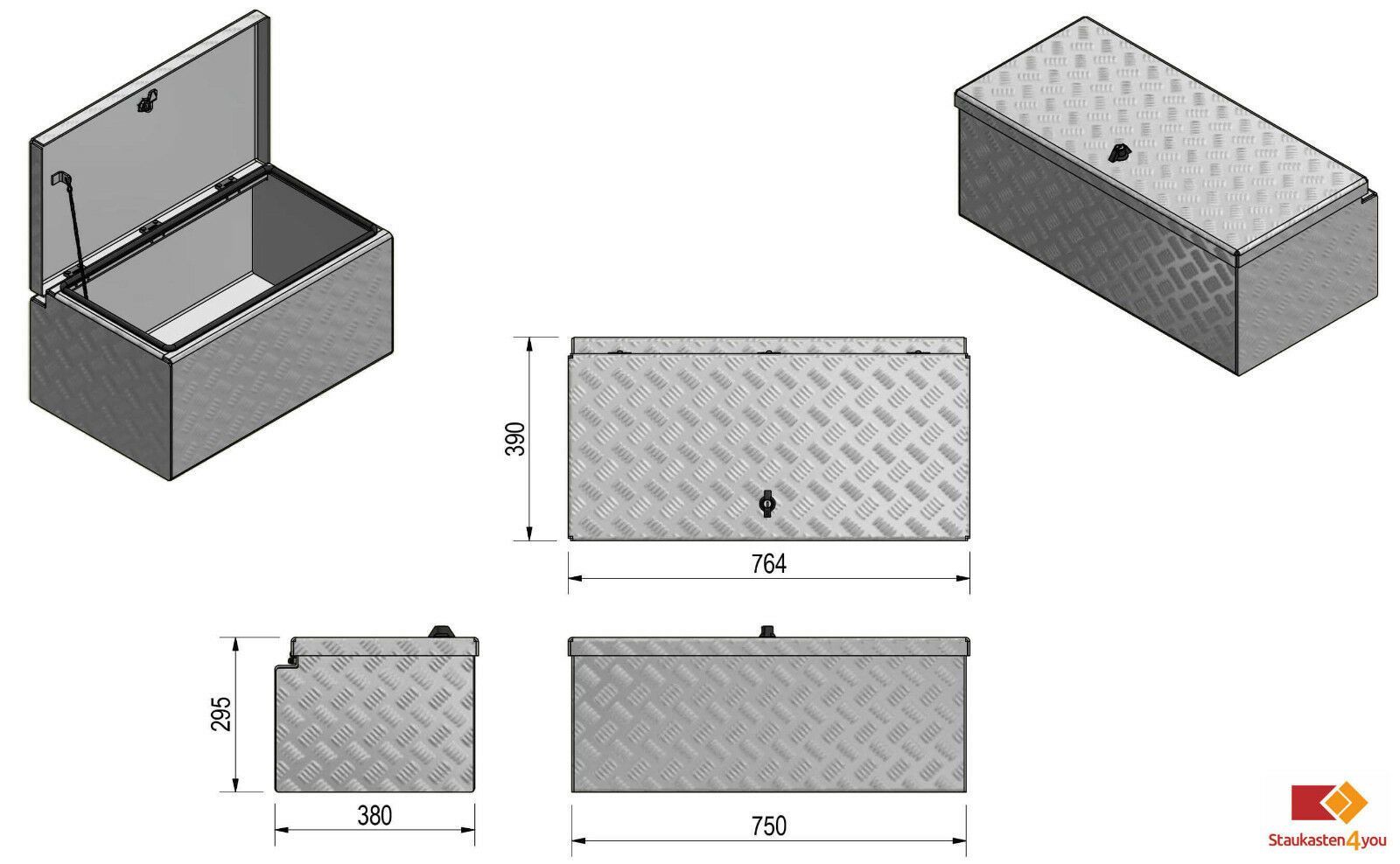 Deichselbox Staubox Gurtkiste Anhängerbox Alu Riffelblech 764x295x390 Nr.510770S