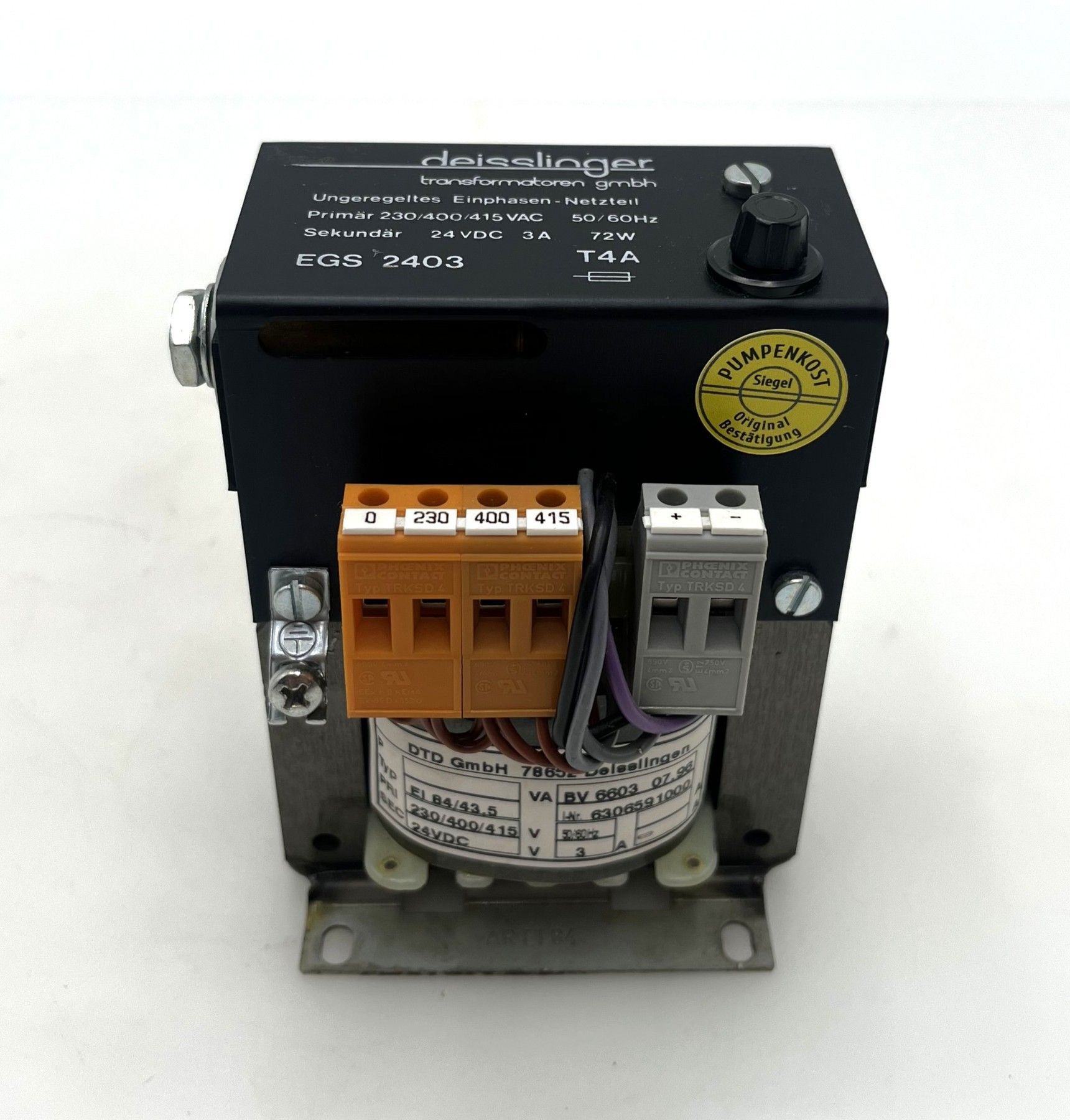 Deisslinger EGS 2403 Transformator 230/400/415V auf 24V DC 3A Trafo T9/249