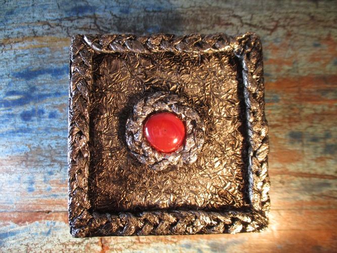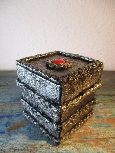 exklusive Deko-Schachtel mit roter Perle die hübsche Dose ist eine tolle Dekoration für jedes Gothic-Ambiente kann zum Aufbewahren von Kleinigkeiten verwendet werden auch ideal als außergewöhnliche Geschenkverpackung von Hand hergestellt, absolutes Unikat nicht für Lebensmittel geeignet Farbe: silbe