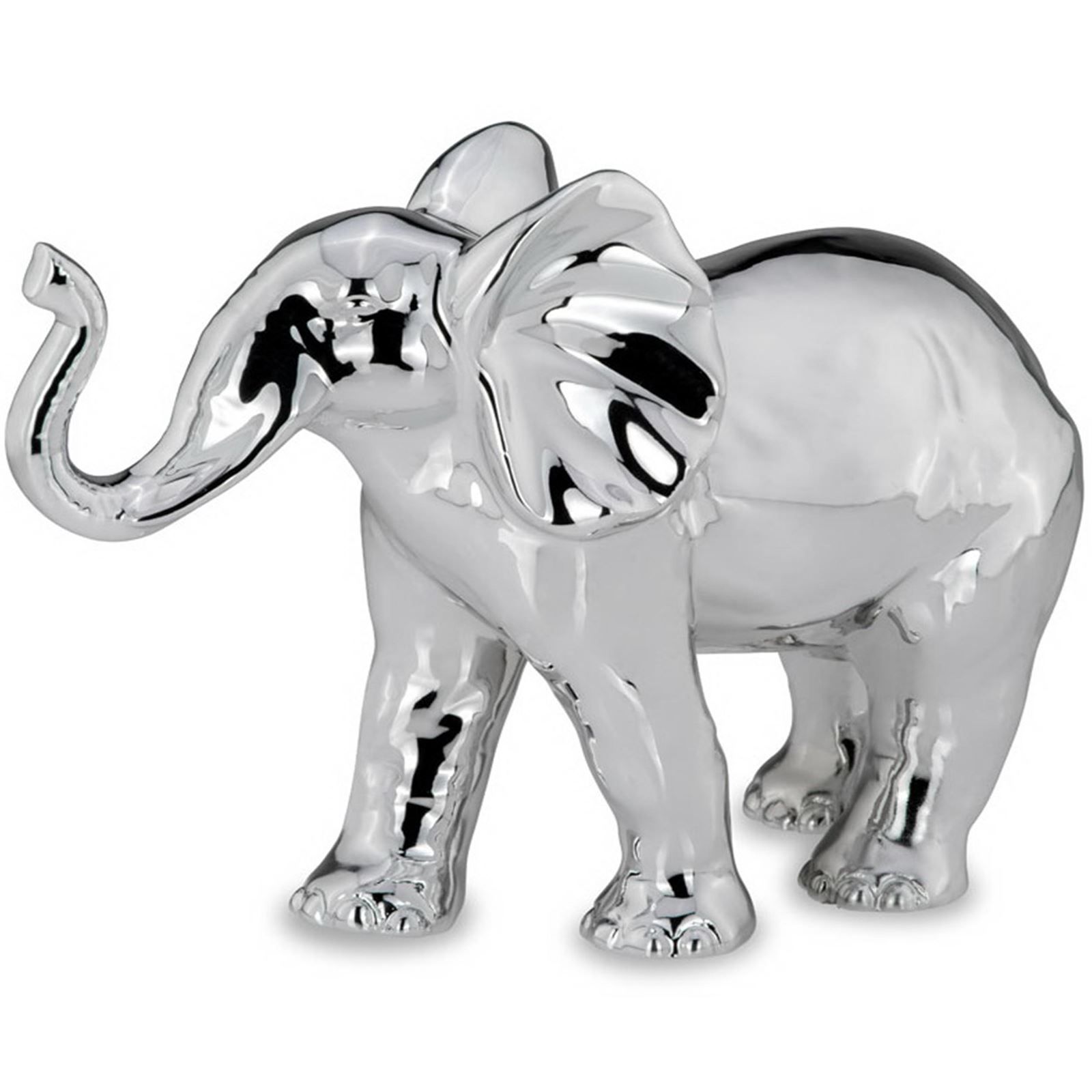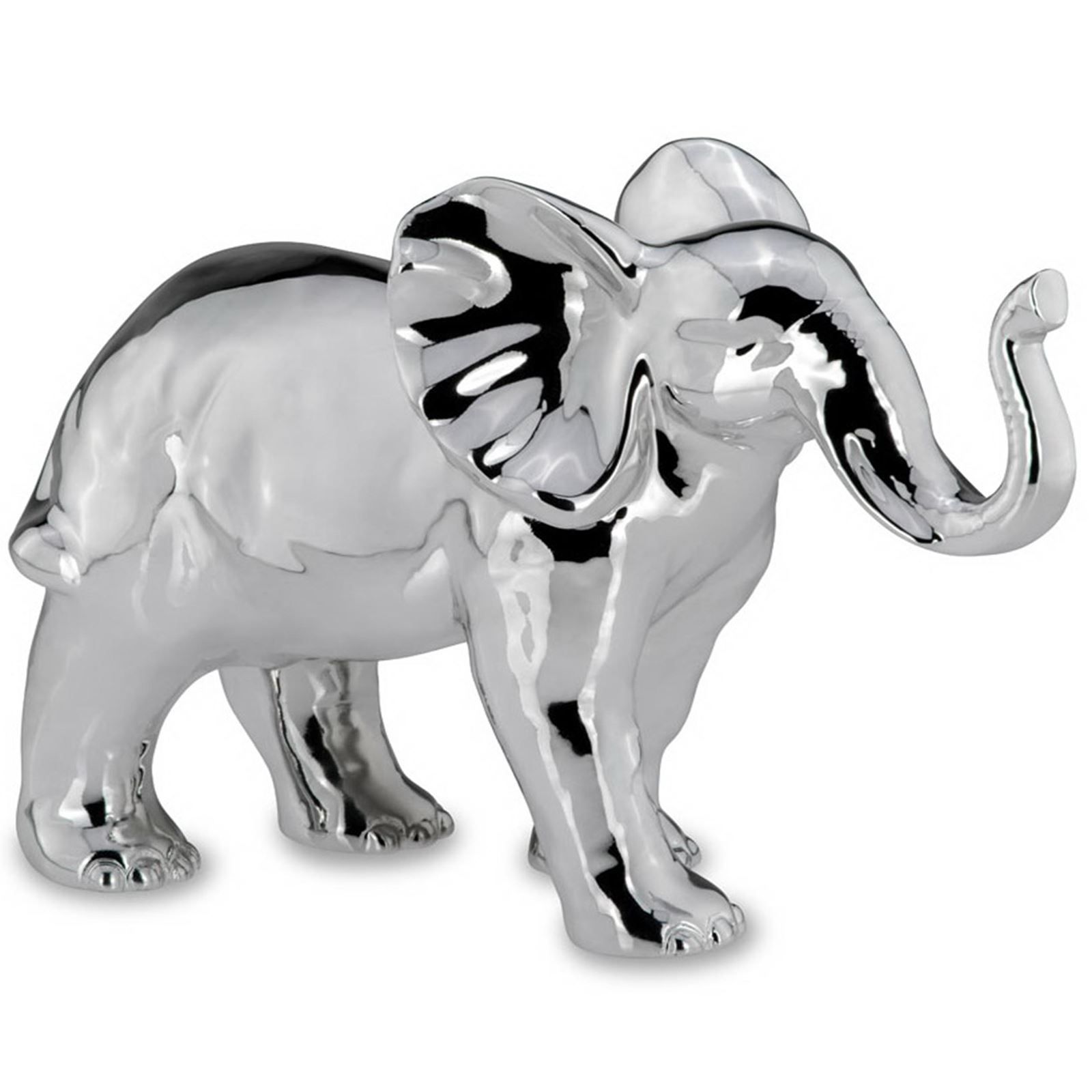 Deko Elefanten Figur Porzellan 25x17 cm Silber Dekofigur Tierfigur für Wohndeko