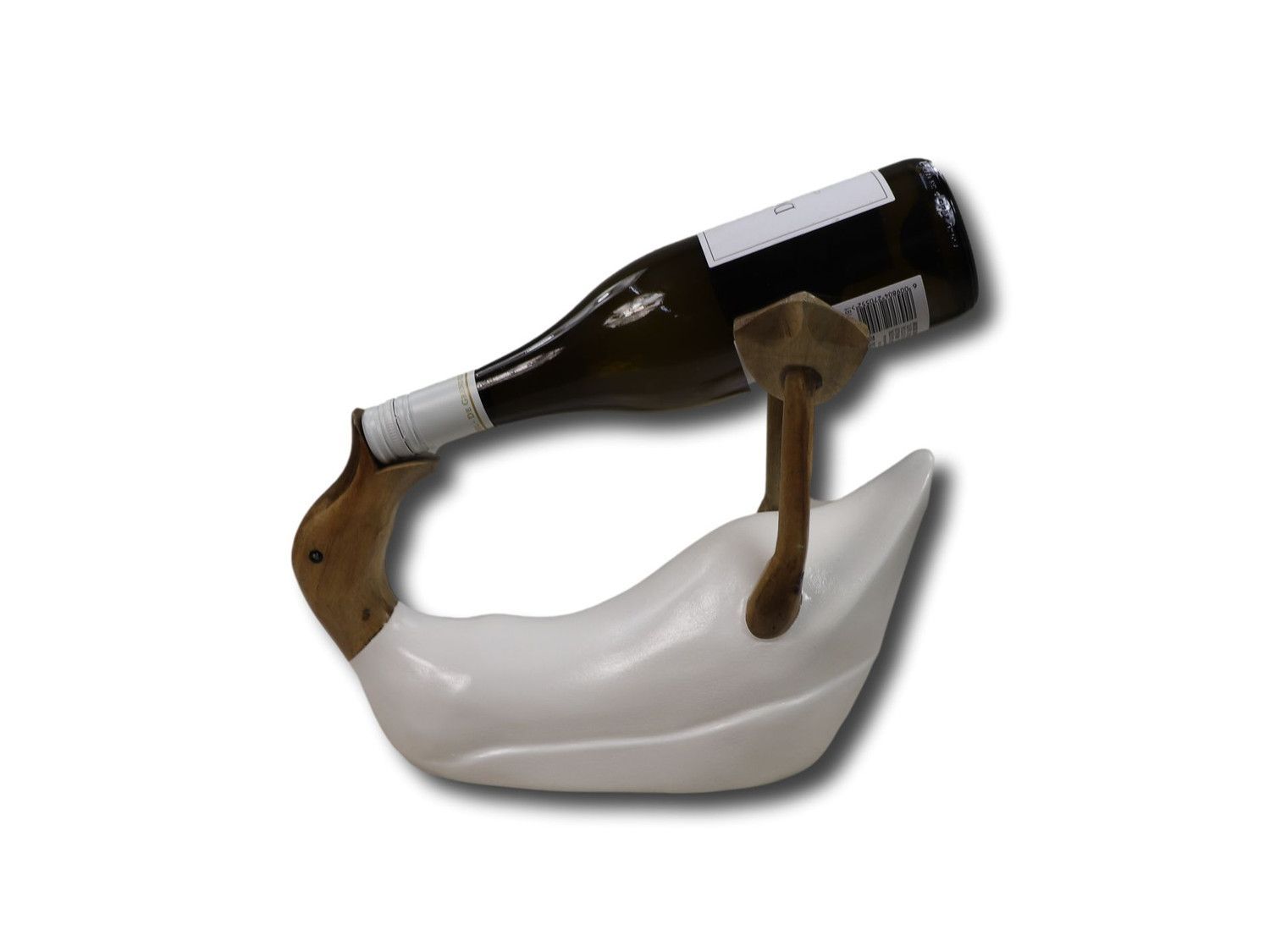 Deko Ente Flaschenhalter Teak Bambus Weiß