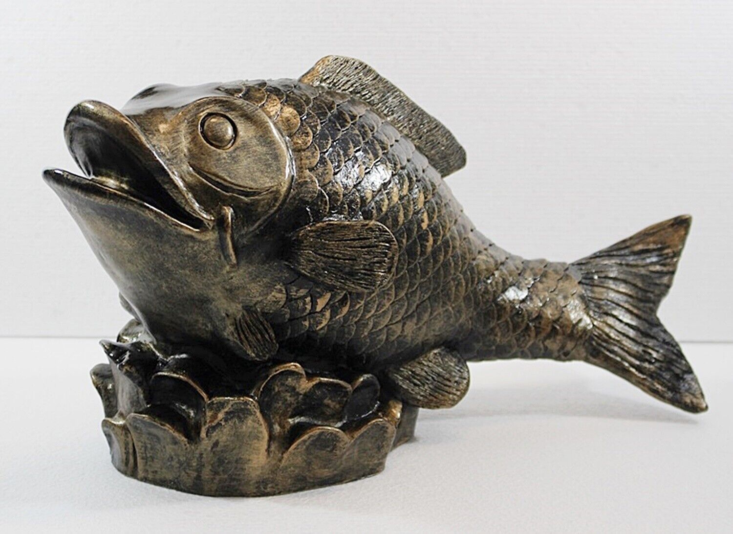 Deko Figur Fisch Kanari Gartenfigur H 23 cm Teichfigur Kupfer-Antik Kunststoff