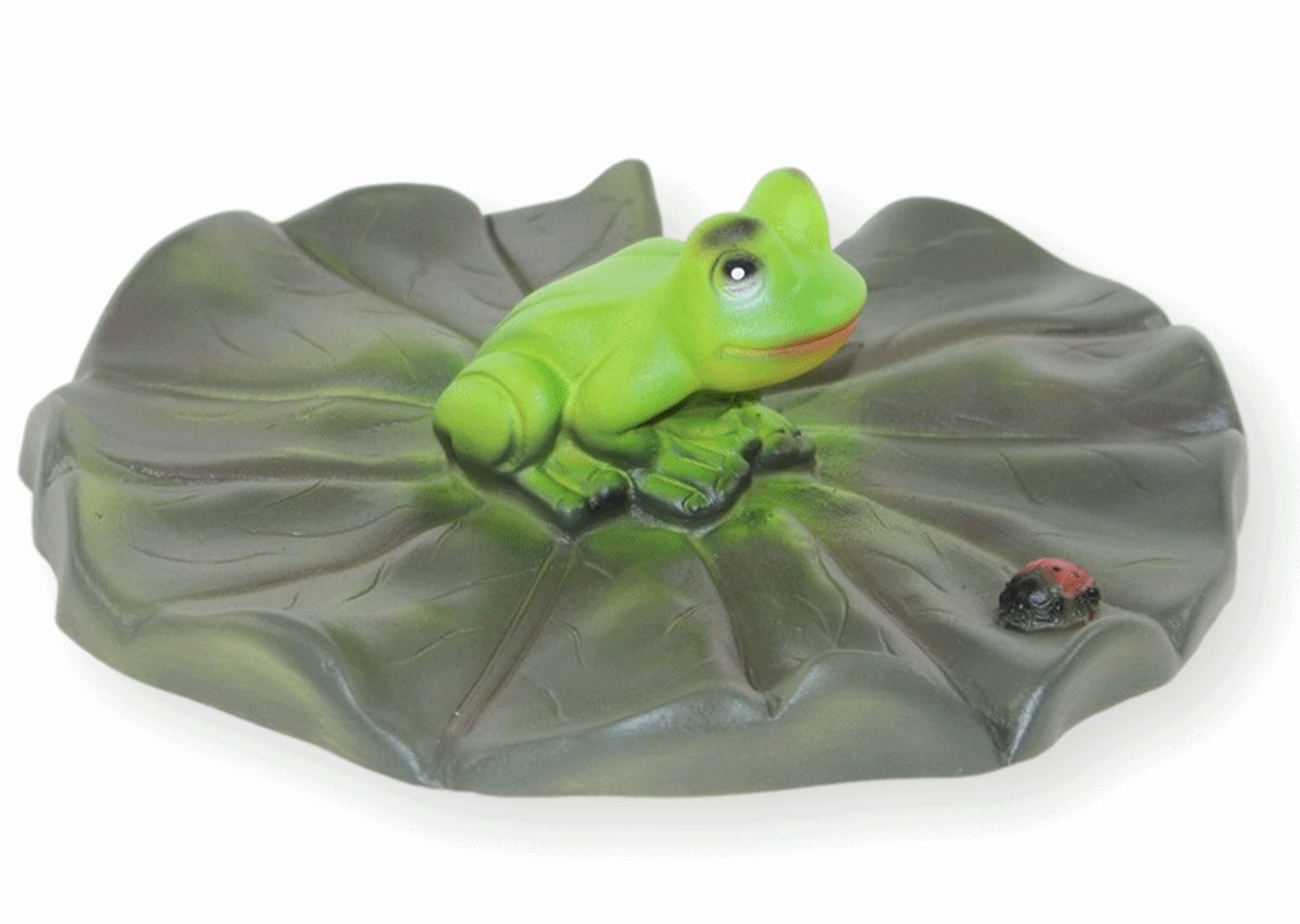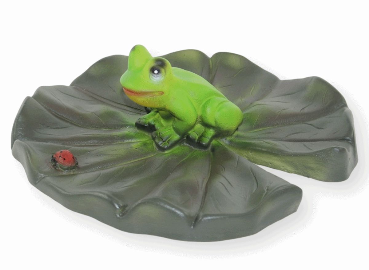 Deko Figur Gartenfigur Teichfigur Seerosenblatt mit Frosch u. Marienkäfer H 6 cm