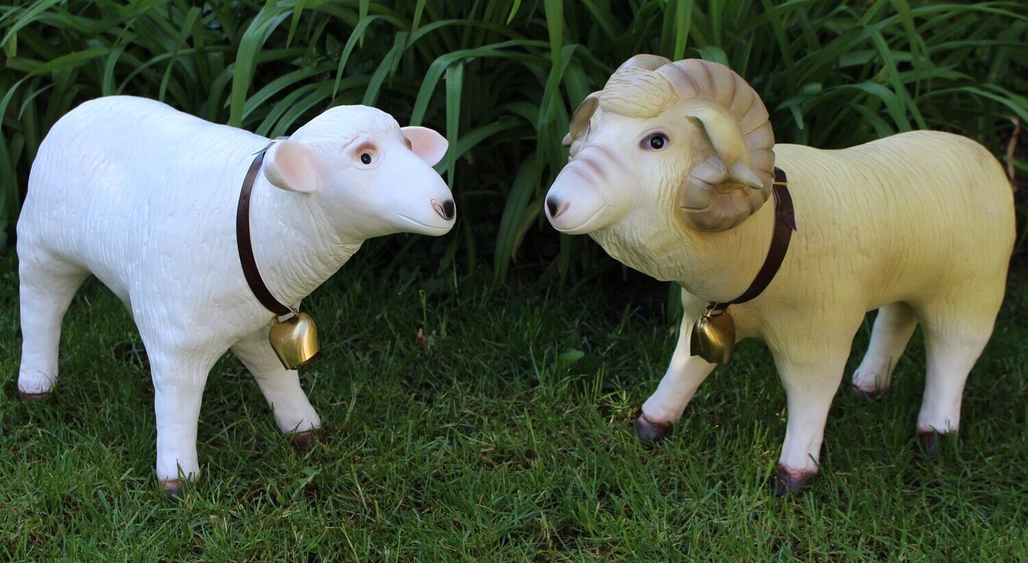 Deko Figur Tierfiguren Schaf und Schafbock als 2-er Satz aus Kunststoff H36-40cm