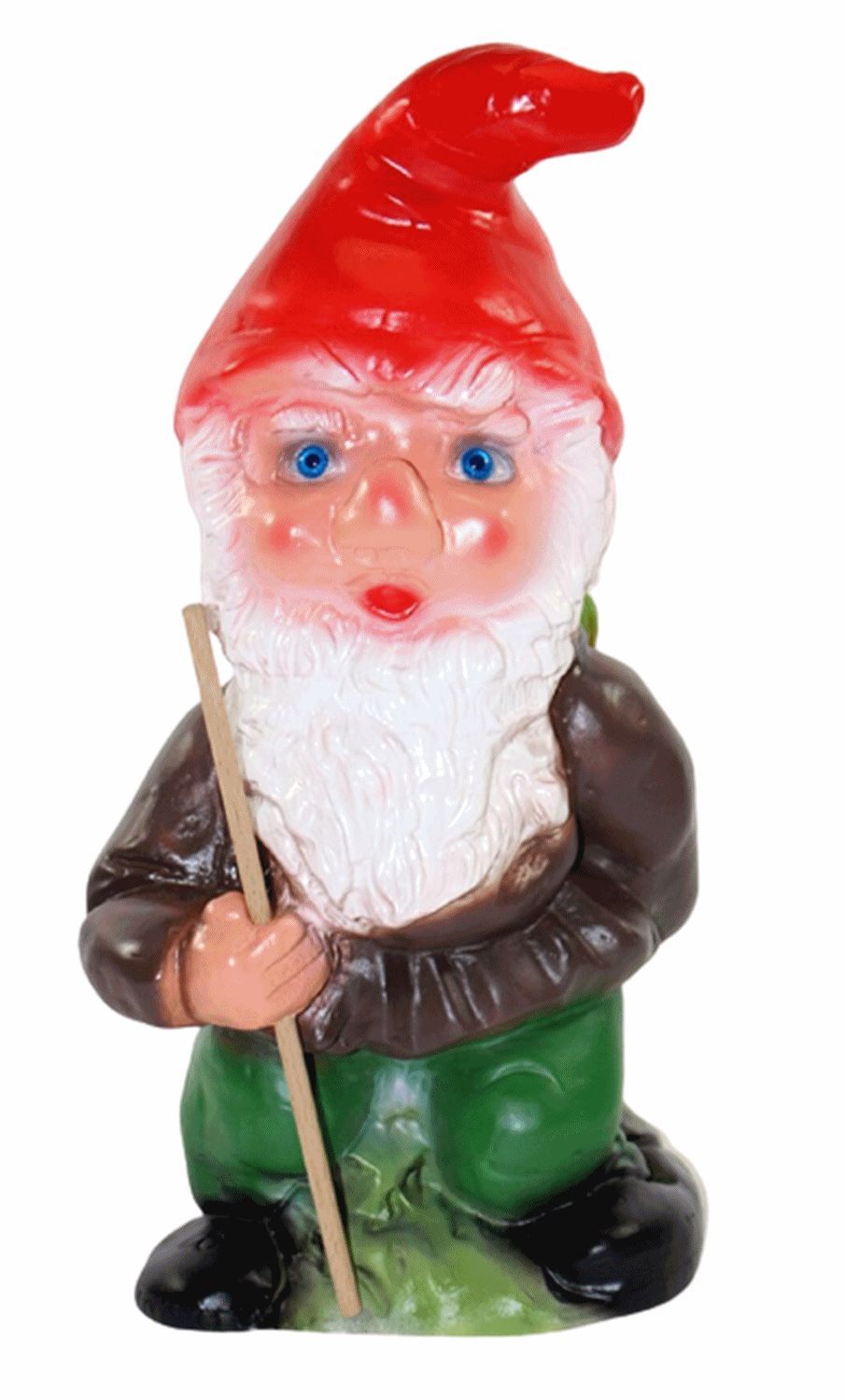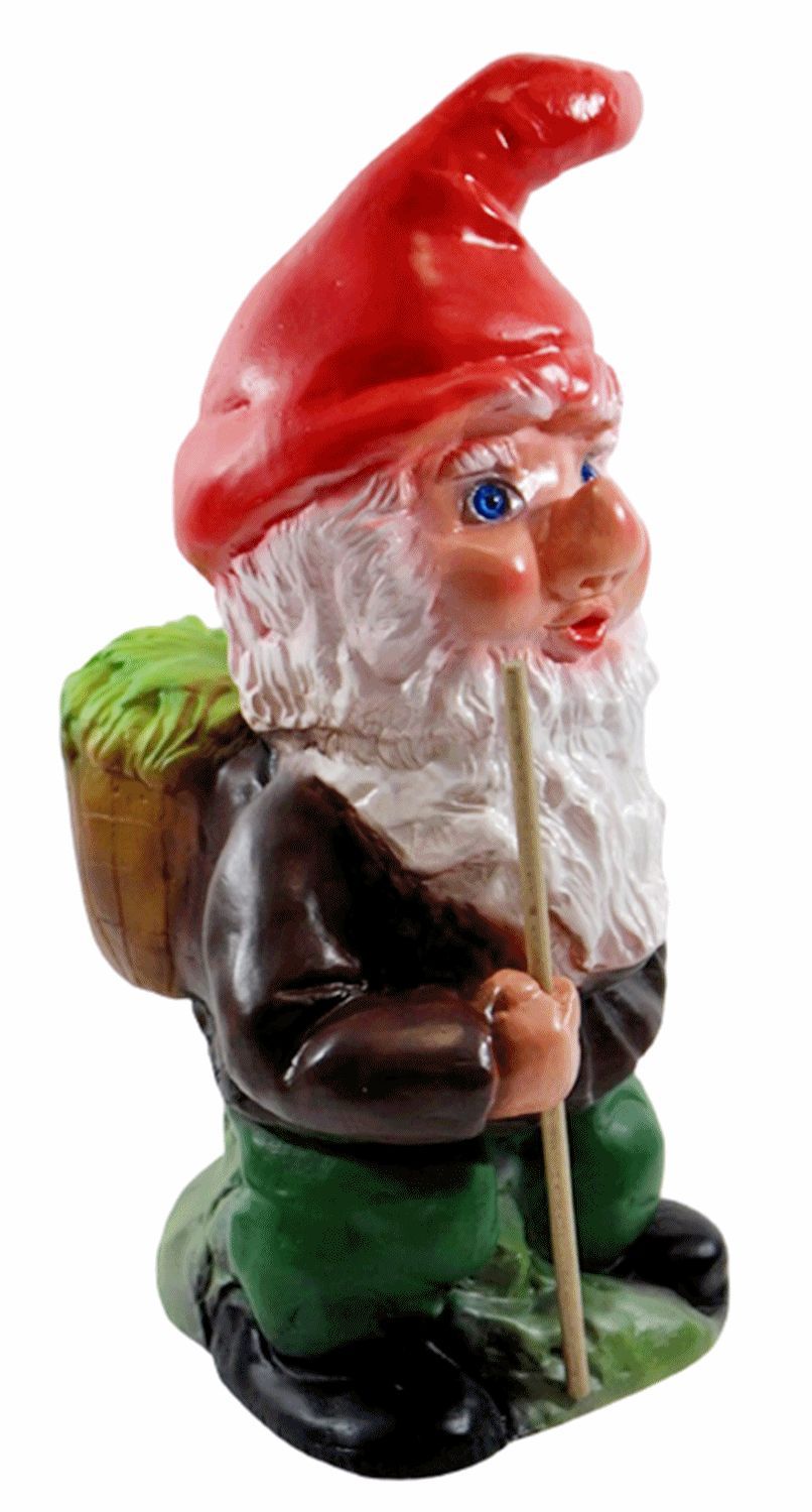 Deko Figur Zwerg H 30 cm Gartenzwerg stehend mit Stock und Korb Gartenfigur