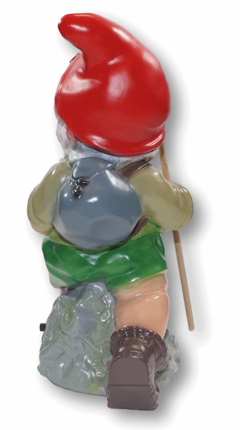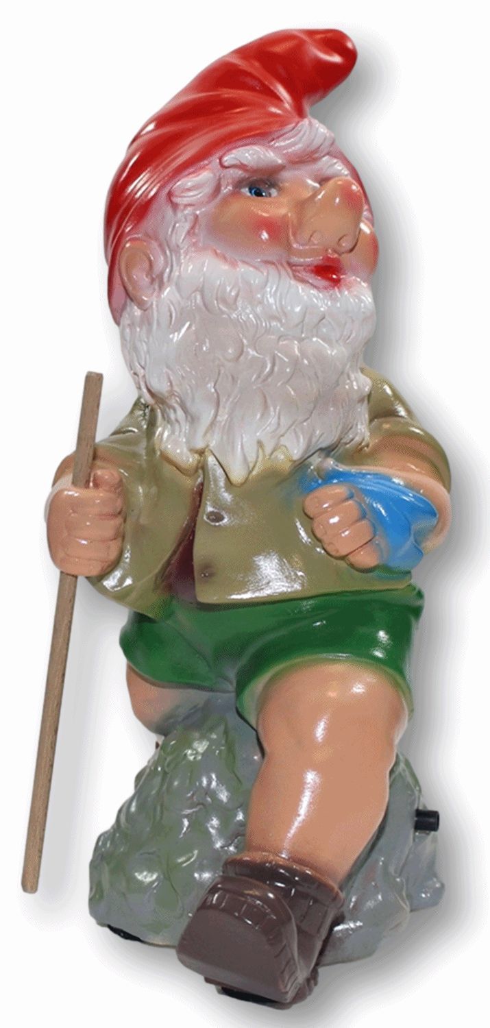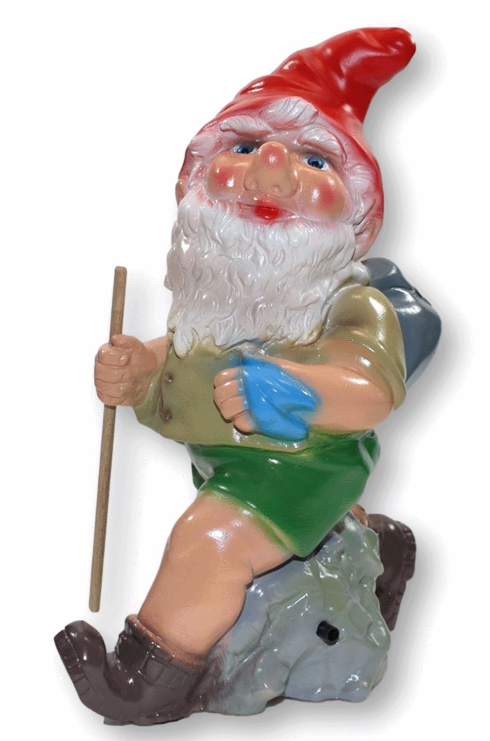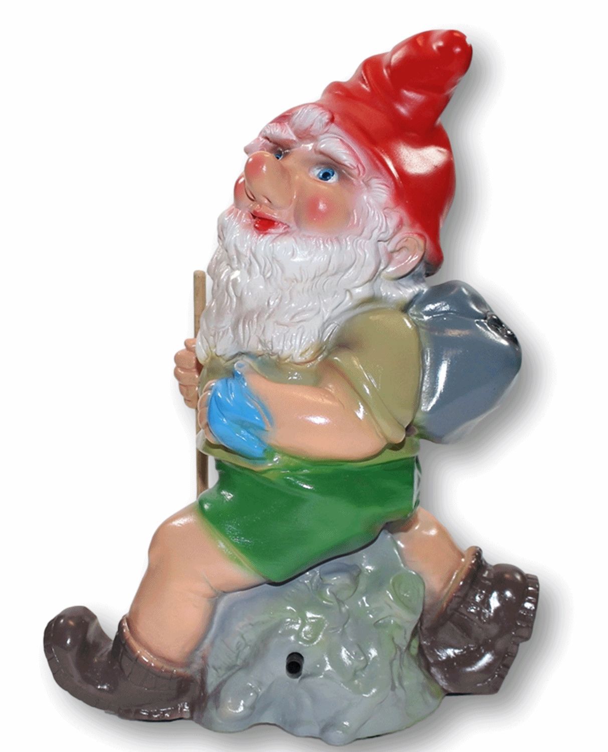 Deko Figur Zwerg Wanderer H 33 cm Gartenzwerg mit Bewegungsmelder Pfeifen Pfiff
