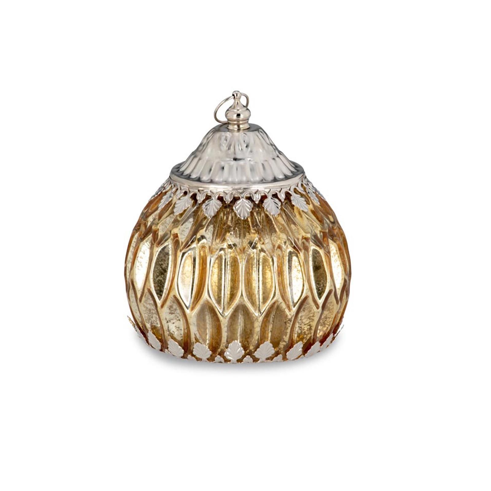 Deko Glas Laterne 15 x Ø 12.5 cm gold antik LED Leuchte Glasleuchte Dekoleuchte