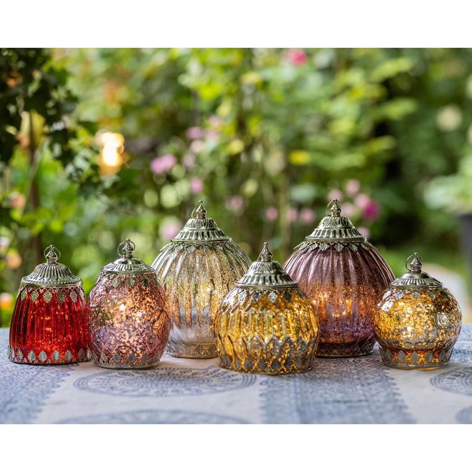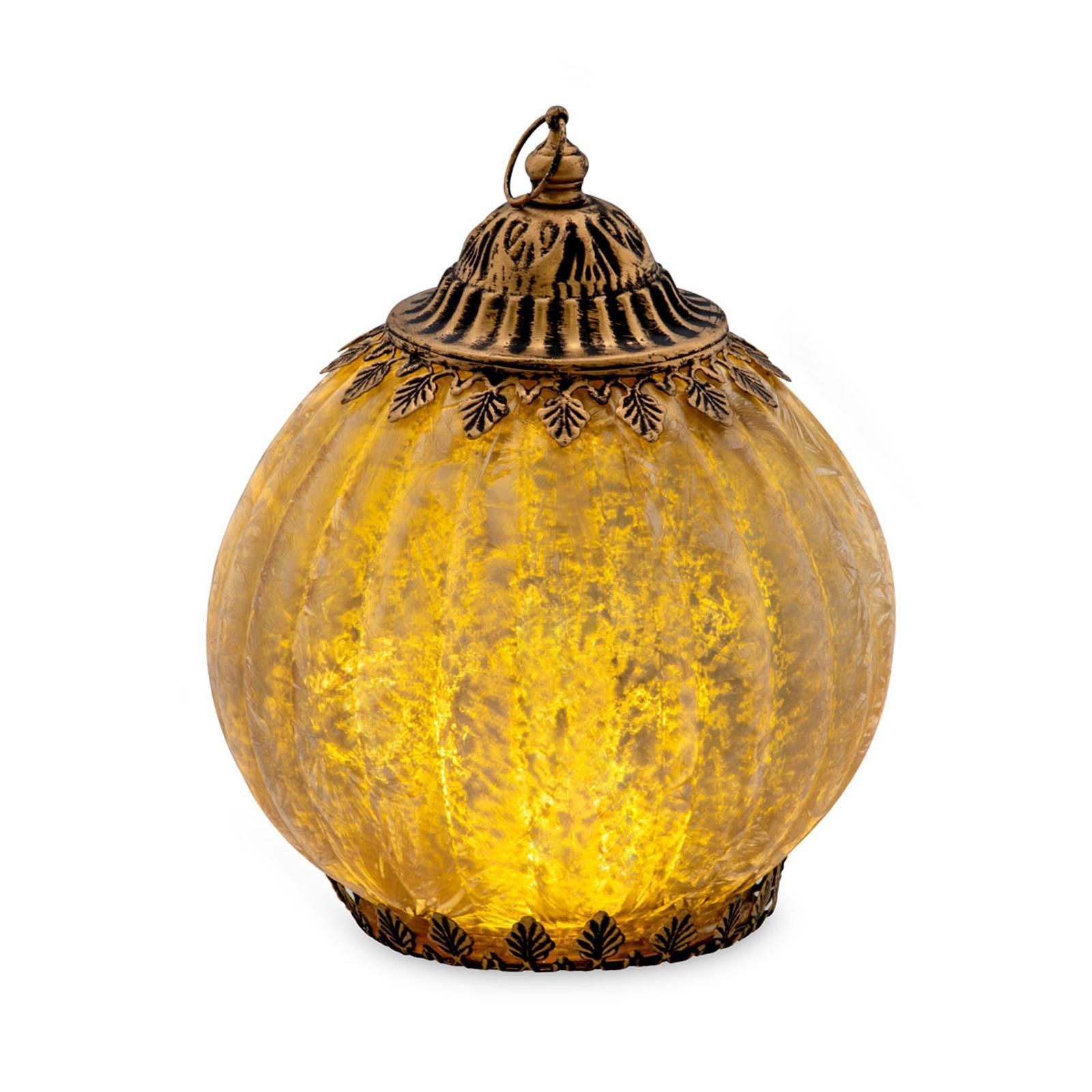 Deko Glas Laterne 19 x 15 cm antik Beige LED Licht Hänge Glasleuchte Dekolicht