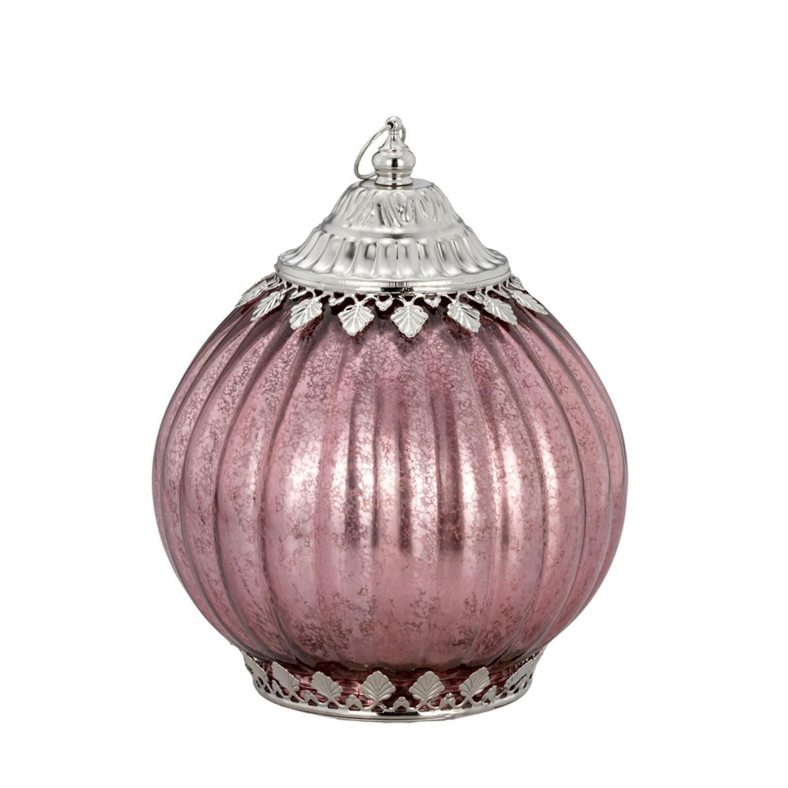 Deko Glas-Laterne 19 x 15 cm antik rosa LED Tischlaterne Hängelampe Dekoleuchte