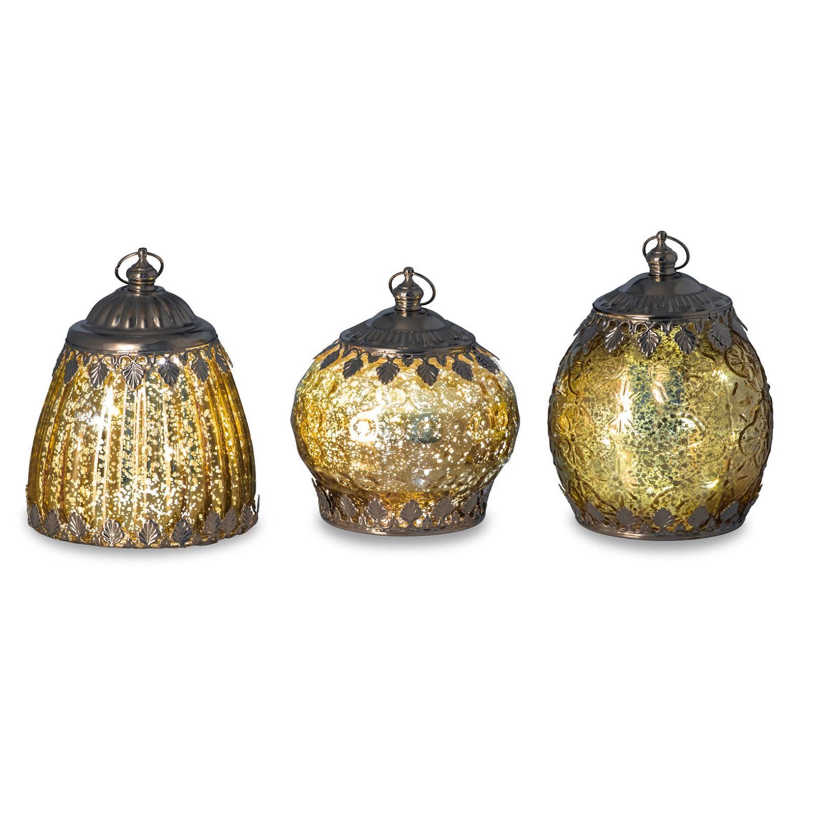 Deko Glas Laternen Set 3-teilig gold antik LED Licht Hänge Glasleuchte Dekolicht