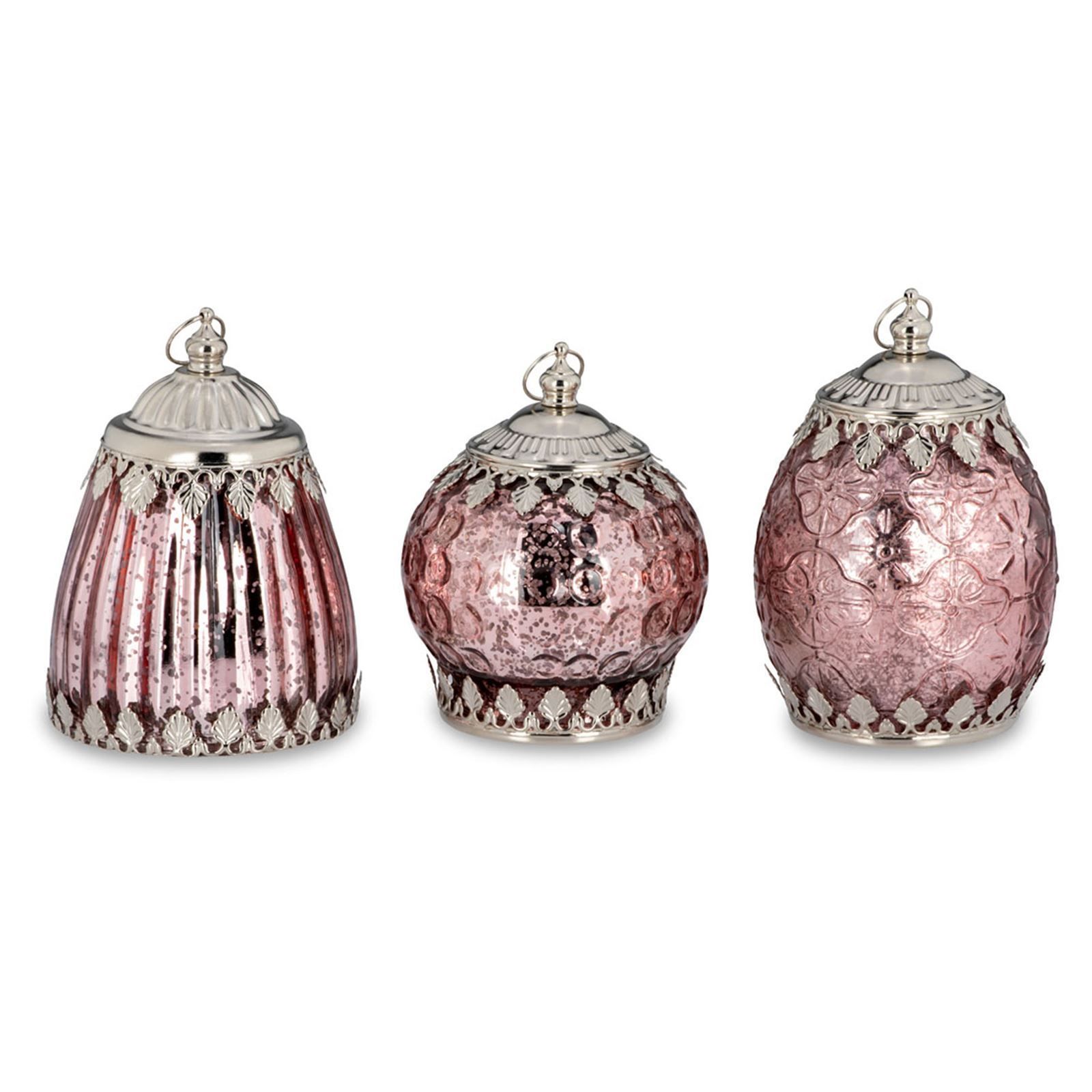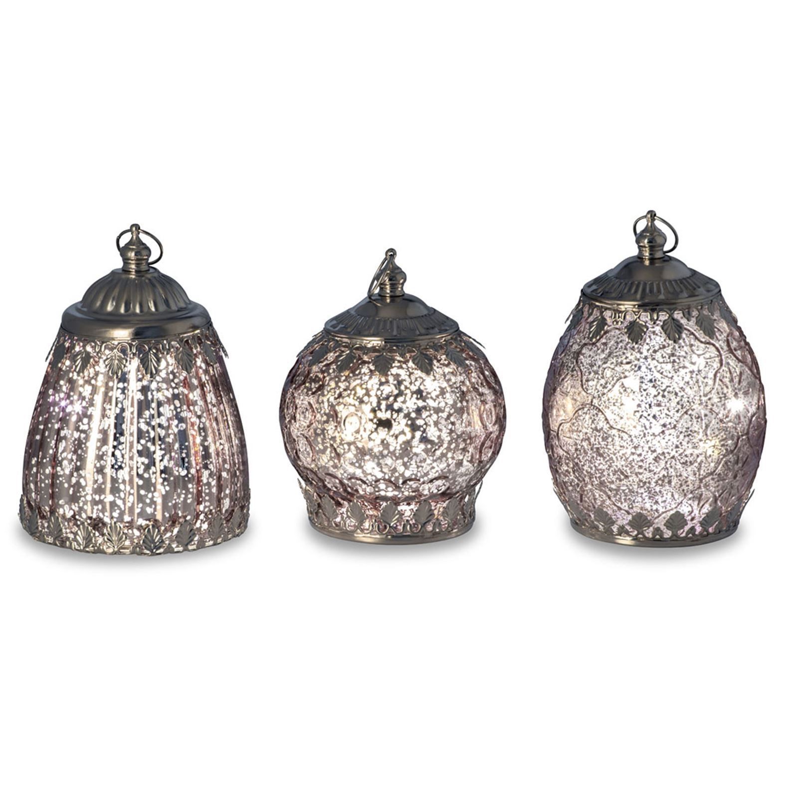 Deko Glas Laternen Set 3-teilig rosa antik LED Licht Hänge Glasleuchte Dekolicht