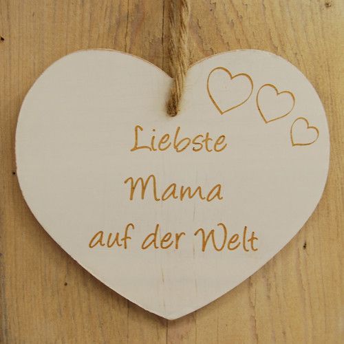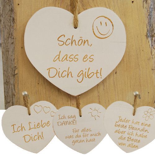 Wurm Deko Hänger Holz Herz mit Spruch Liebe Mama Freunde Freundin Lachen Optimist NEU