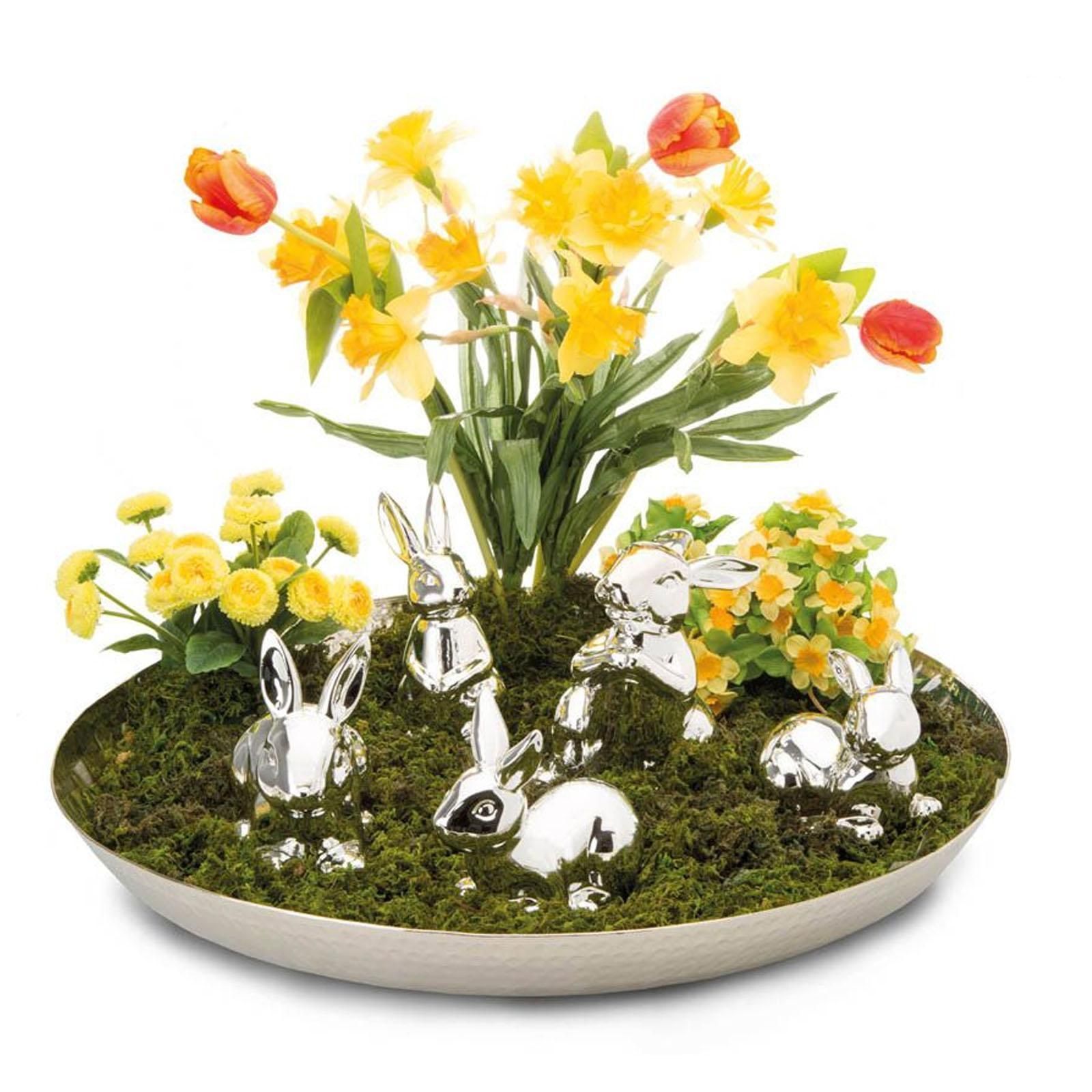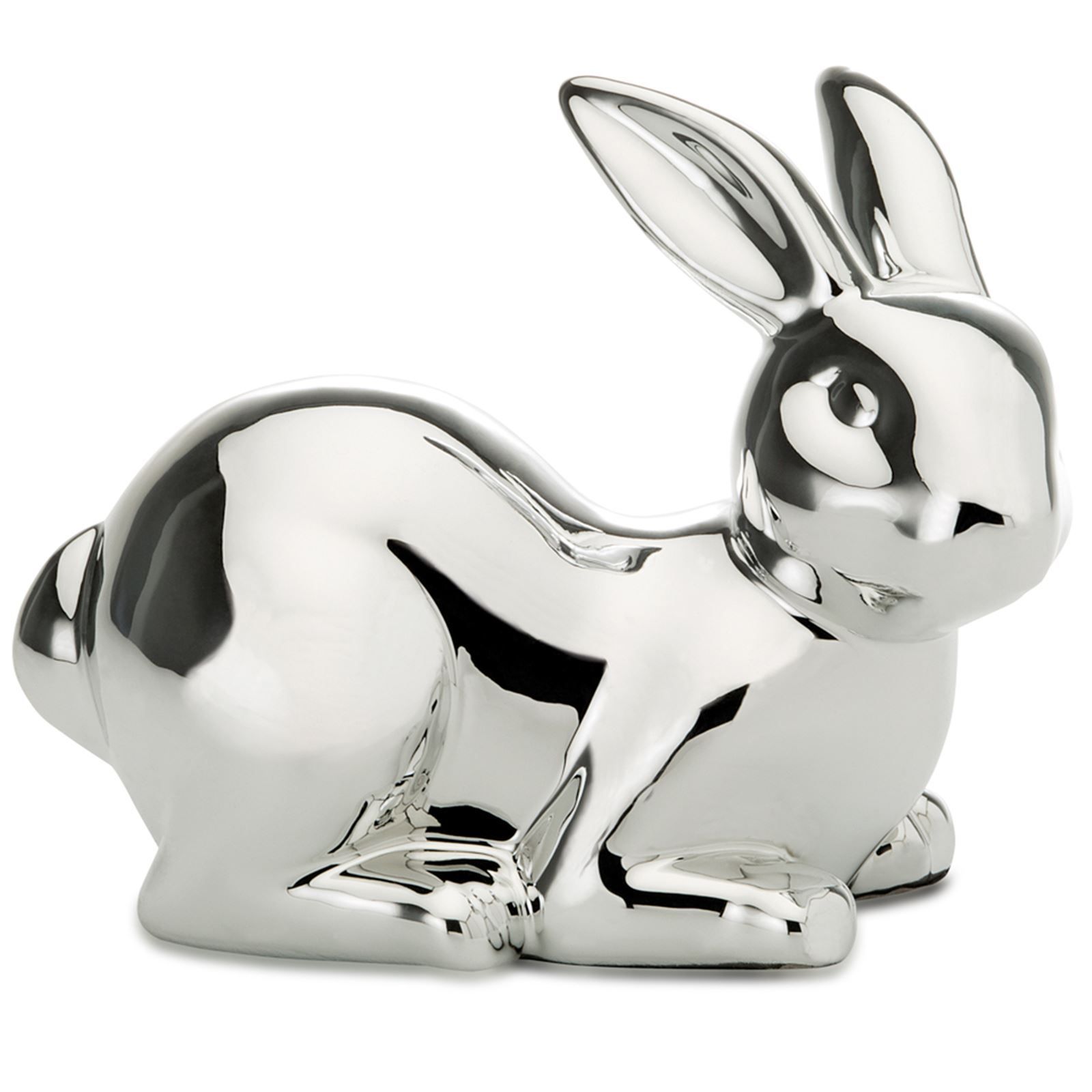 Deko Hase 13.5cm Silber Osterhase liegende Porzellan Hasenfigur Dekofigur Ostern