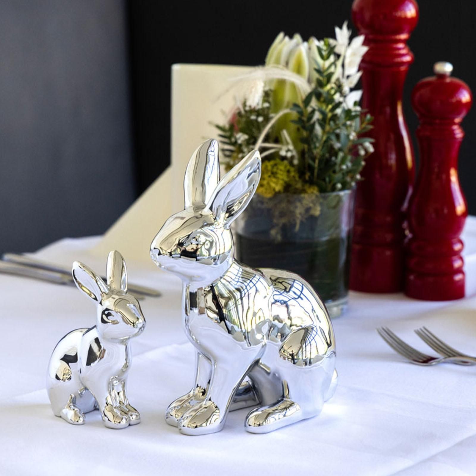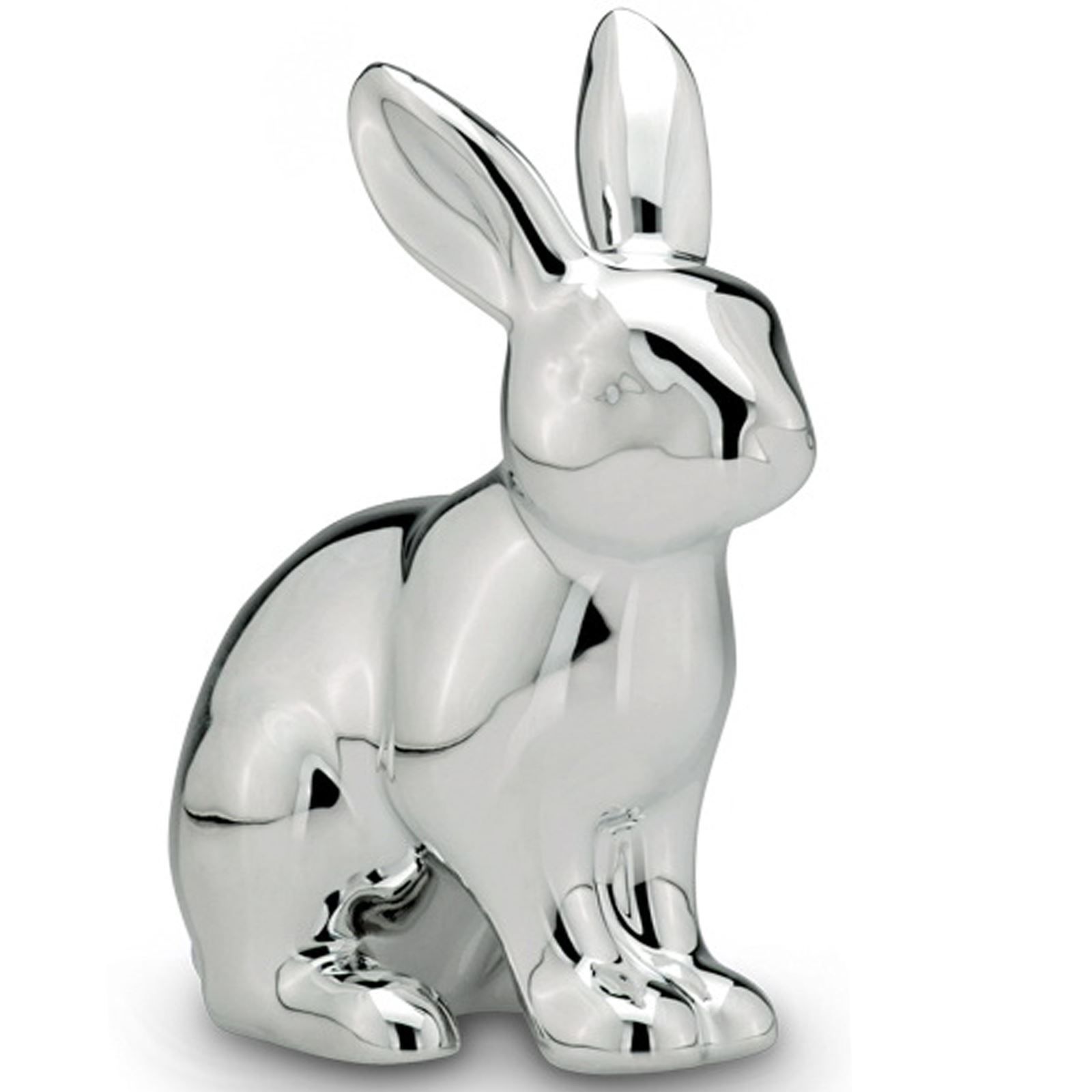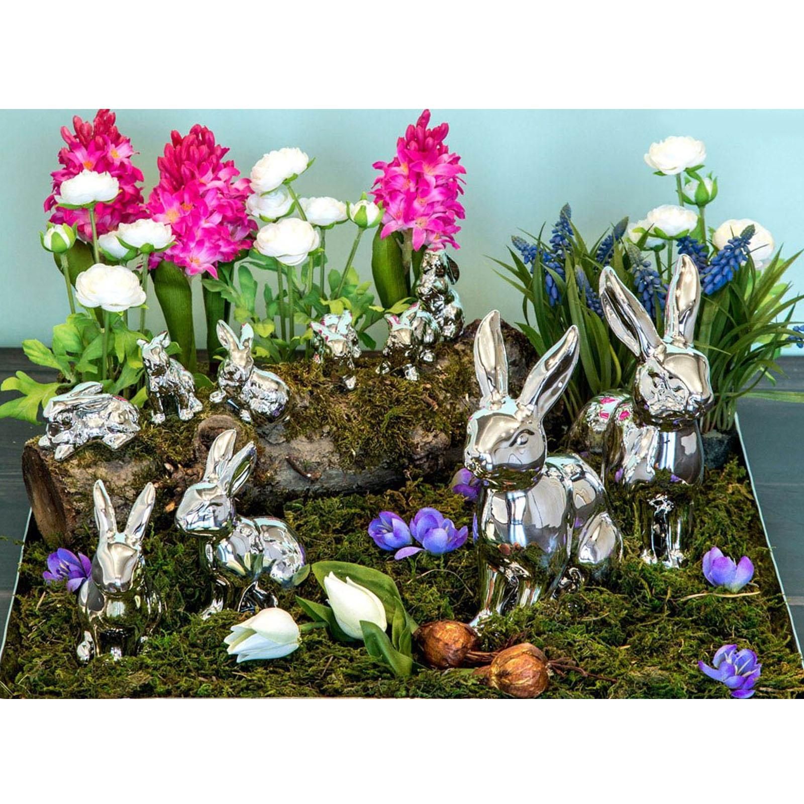 Deko Hase 13 cm Porzellan Silber Osterhase sitzende Hasenfigur Dekofigur Ostern