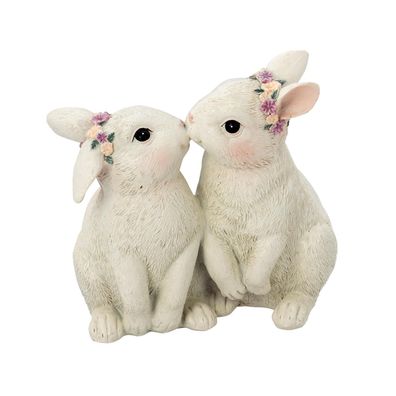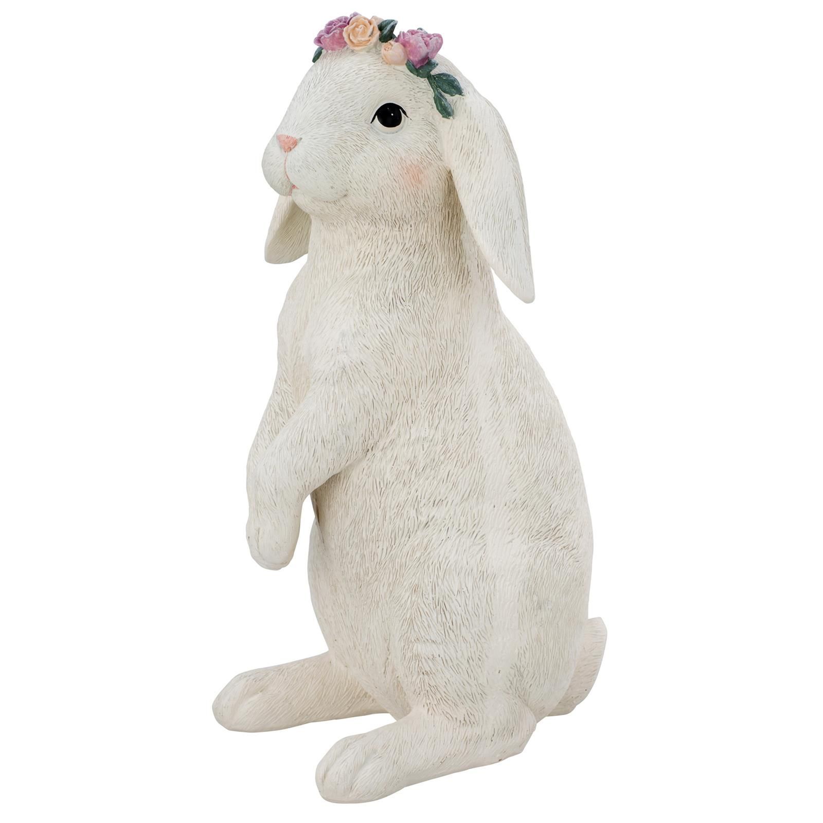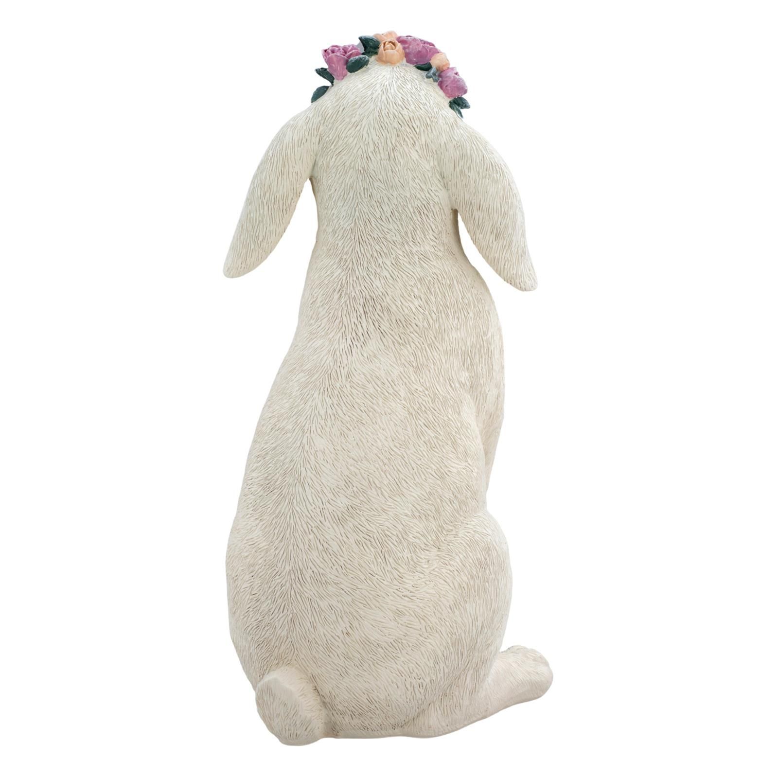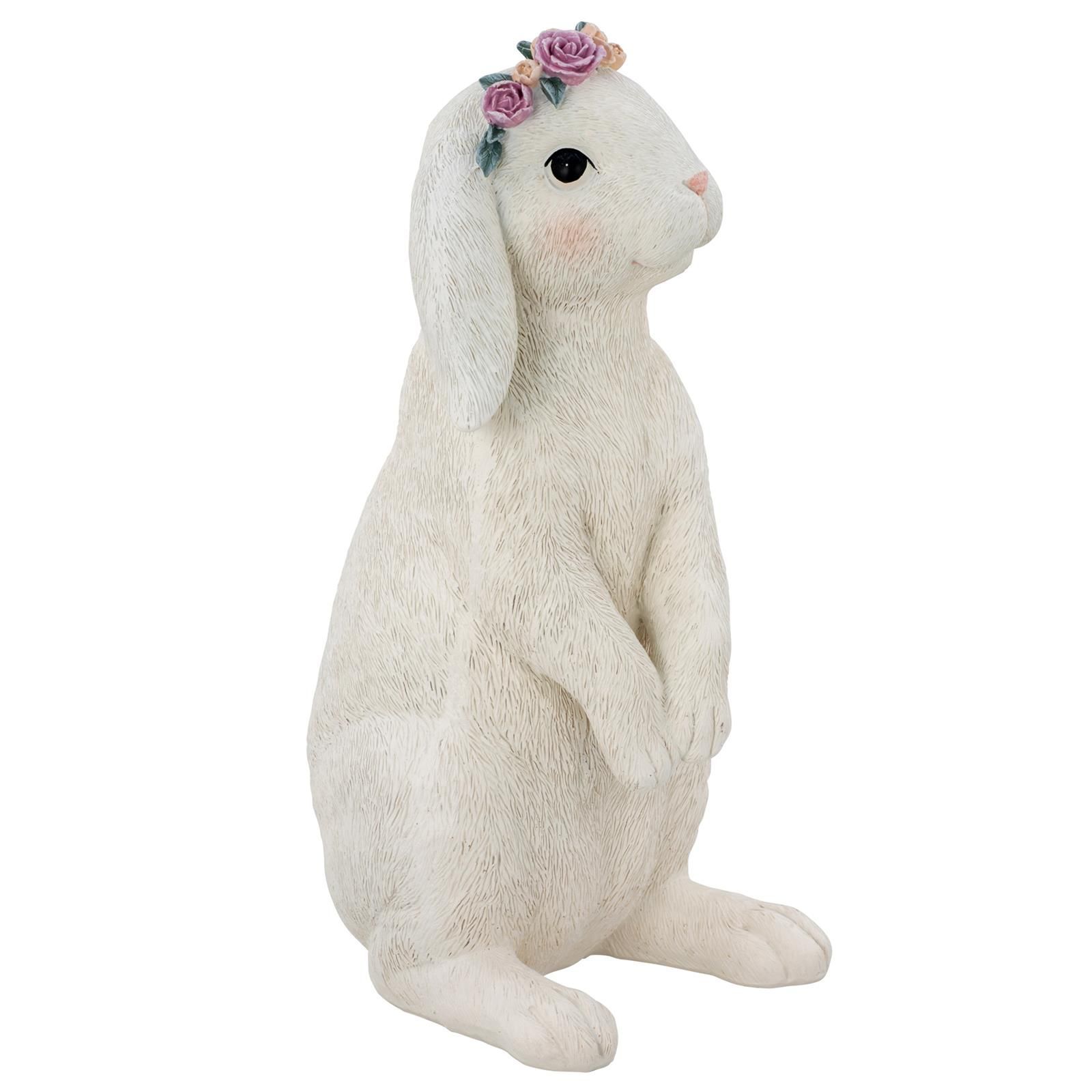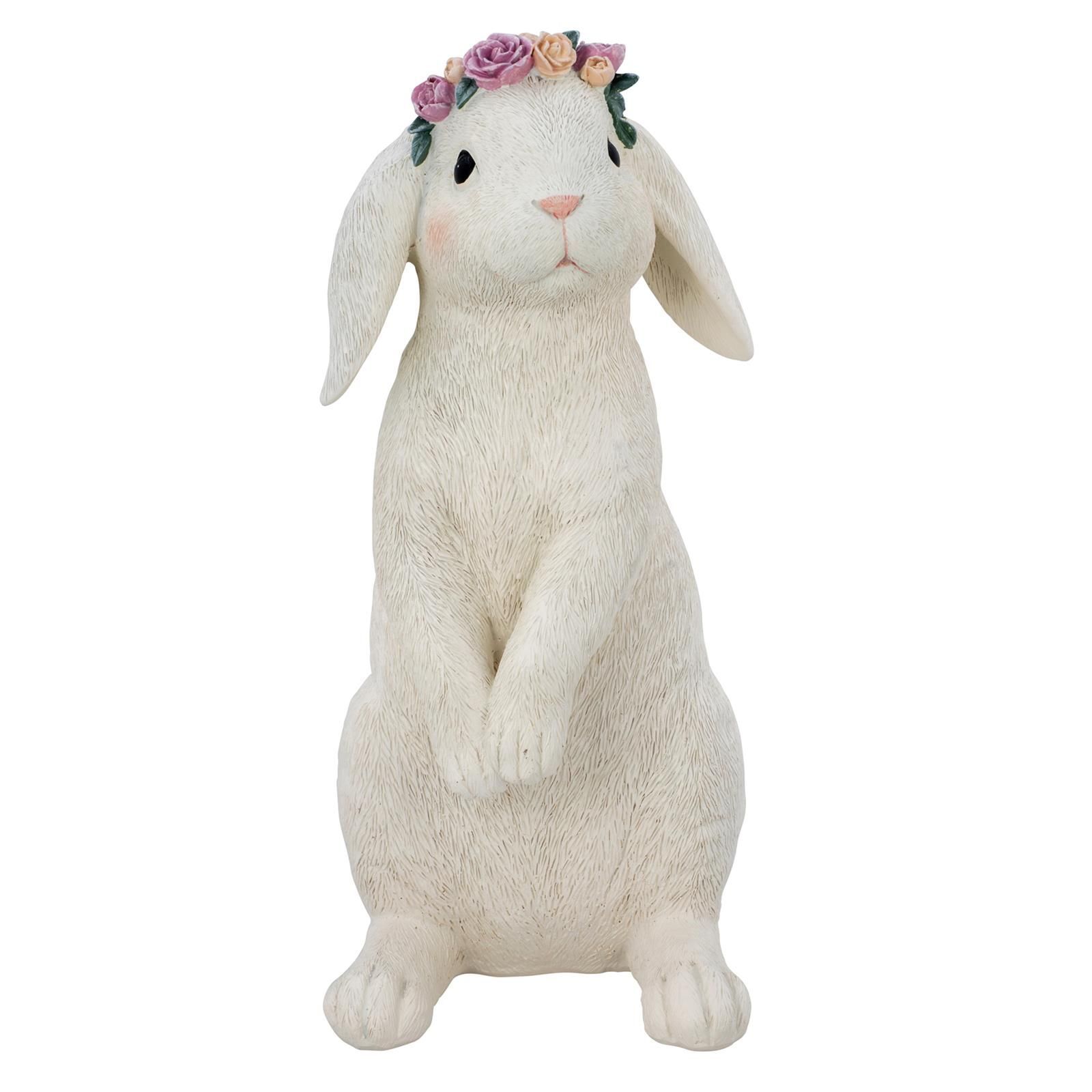 Deko-Hase 30 cm Kunststein Hasenfigur mit Blumenkranz Dekofigur Ostern Osterhase