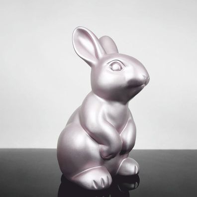 • Deko Hase 15.8 cm Kunststein Osterhase Silberglanz Hasenfigur Hasenjunge stehend
