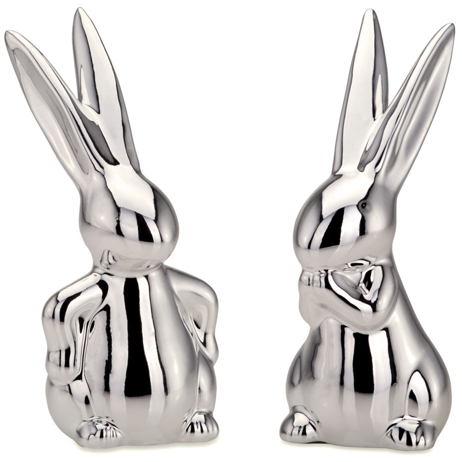 Deko Hasen Paar je 15.5 cm 2-teiliges Porzellan Hasenfiguren Set Ostern Wohndeko
