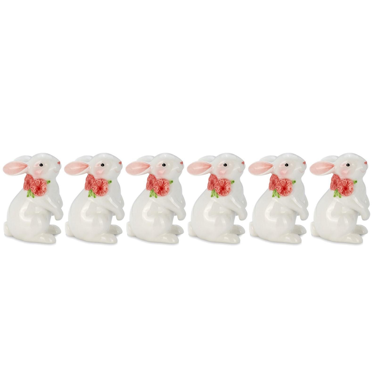 Deko-Hasen-Set 6 tlg. stehend weiß Mini Osterhasen-Figuren 8,5 cm Keramik Bunnys