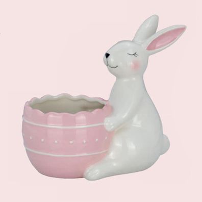 Deko Hasen-Übertopf 16 cm Keramik rosa Blumentopf Osterdeko Hasenfigur Deko Topf