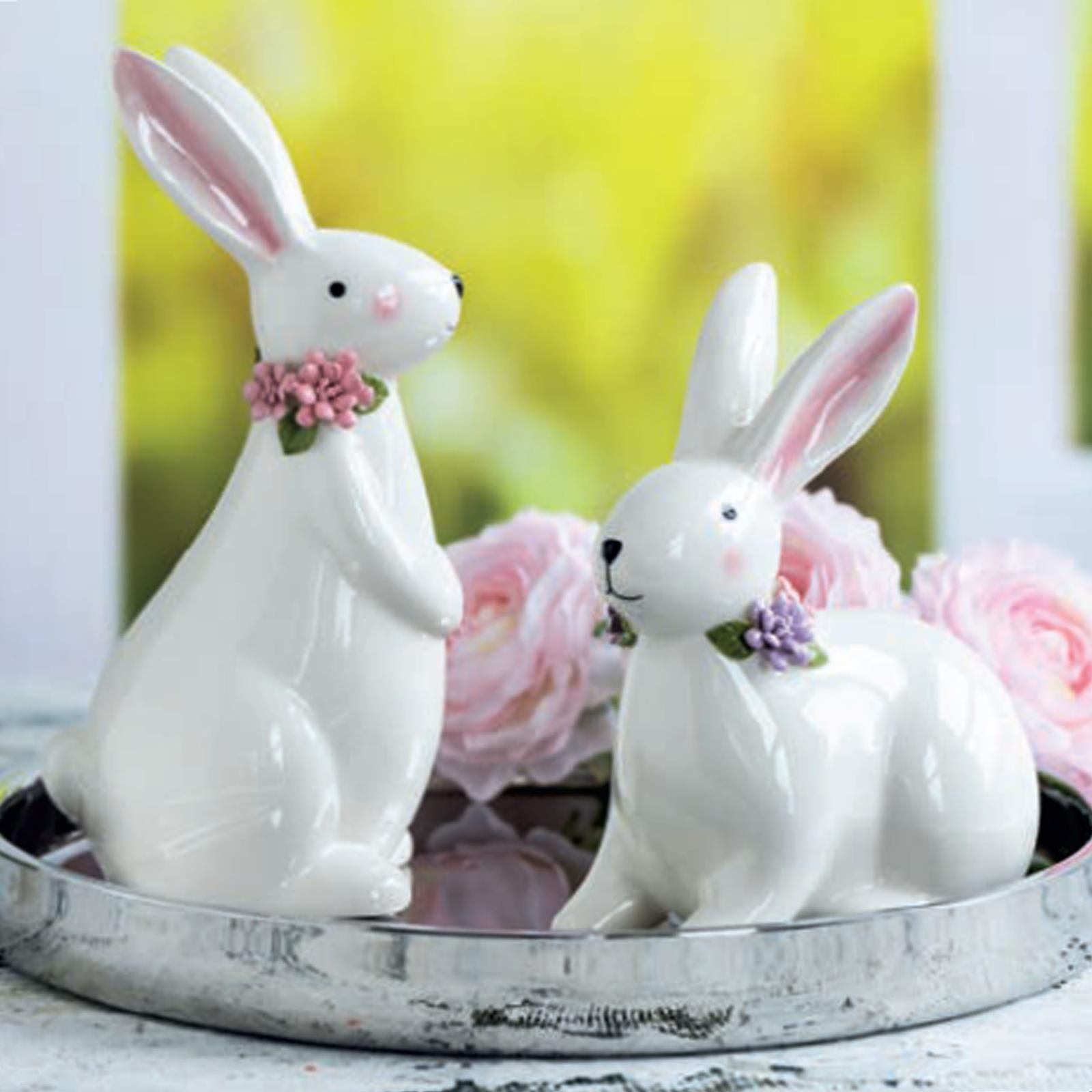 Deko Hasenfigur 17 cm weiß Keramik Osterhase sitzend Dekofigur Osterdeko Häschen