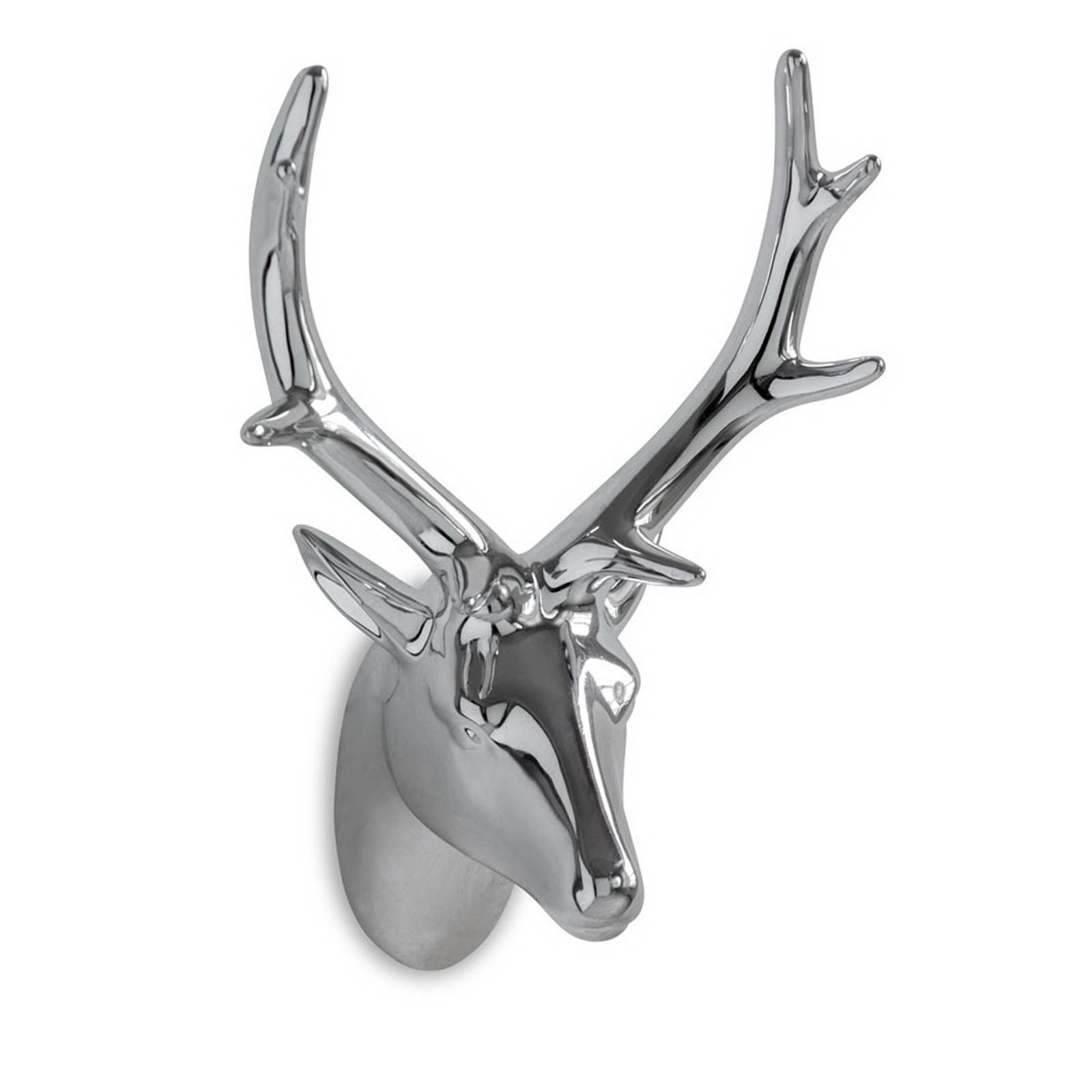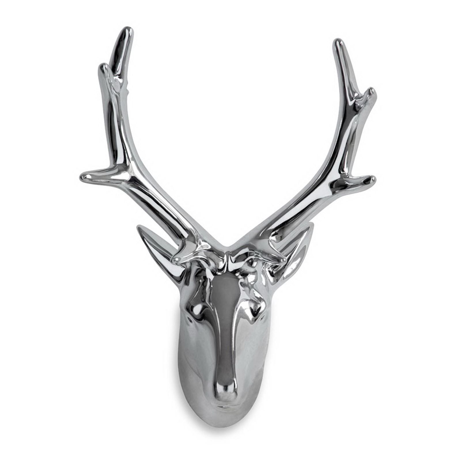 Deko Hirschkopf Figur Geweih 22 cm Porzellan Silber Wanddeko hängende Dekofigur