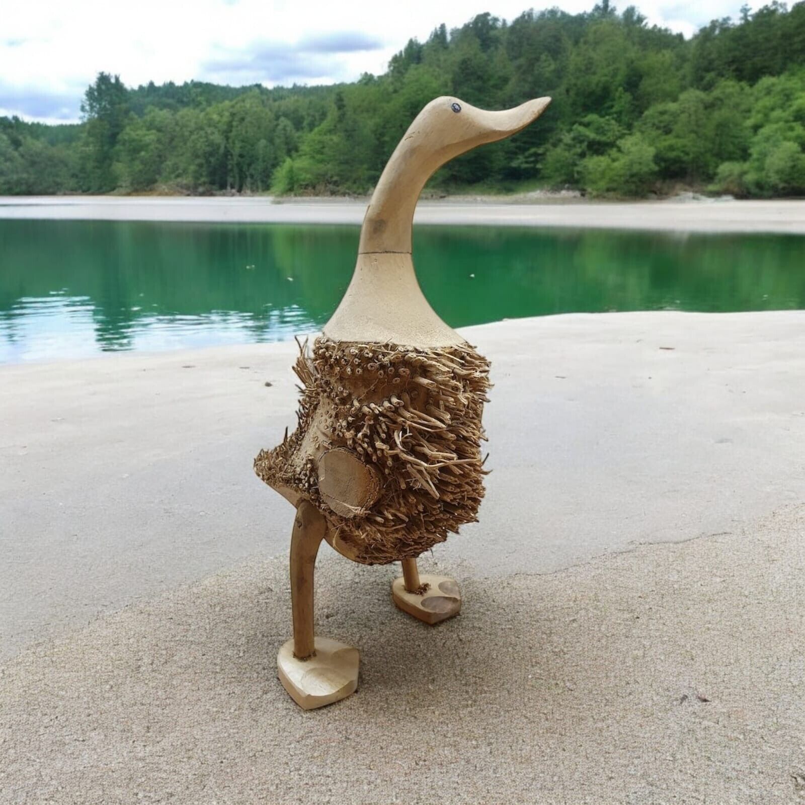 Deko Holz Ente Bambus Wurzelholz Enten Figur Tier Dekoration Garten Terrasse