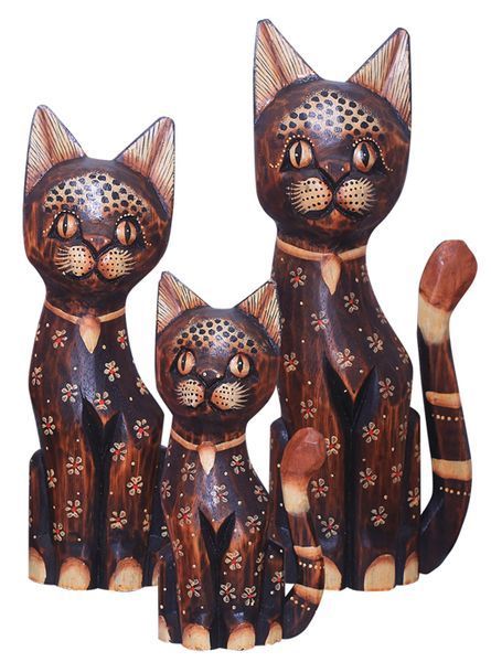 Deko-Katzen MING aus Holz im 3er-Set, Tierfigur zur Dekoration