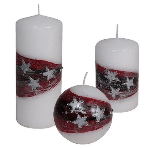 Deko Kerze Galaxie Kugel oder Stumpen Stern rot weiss Weihnachten Adventskranz