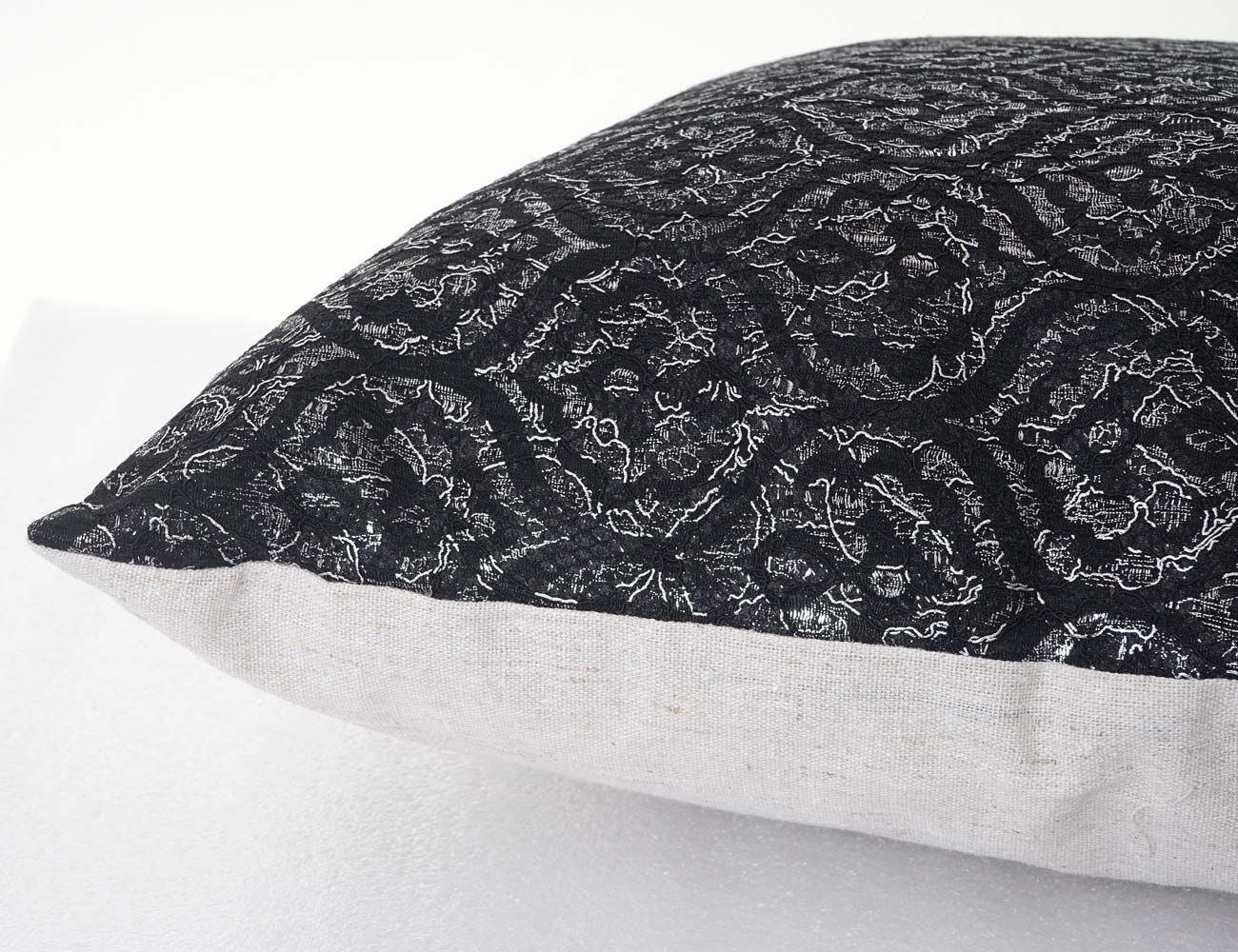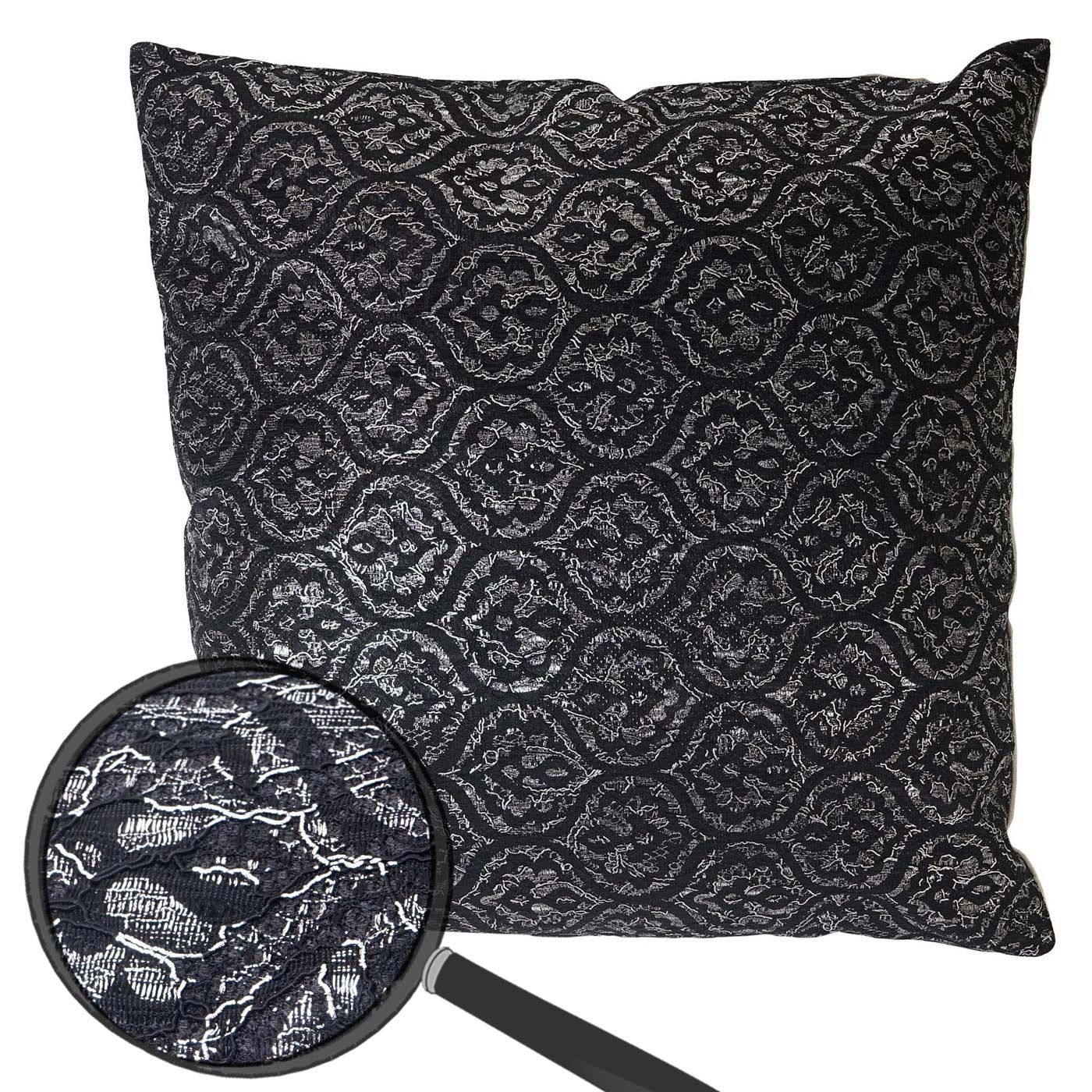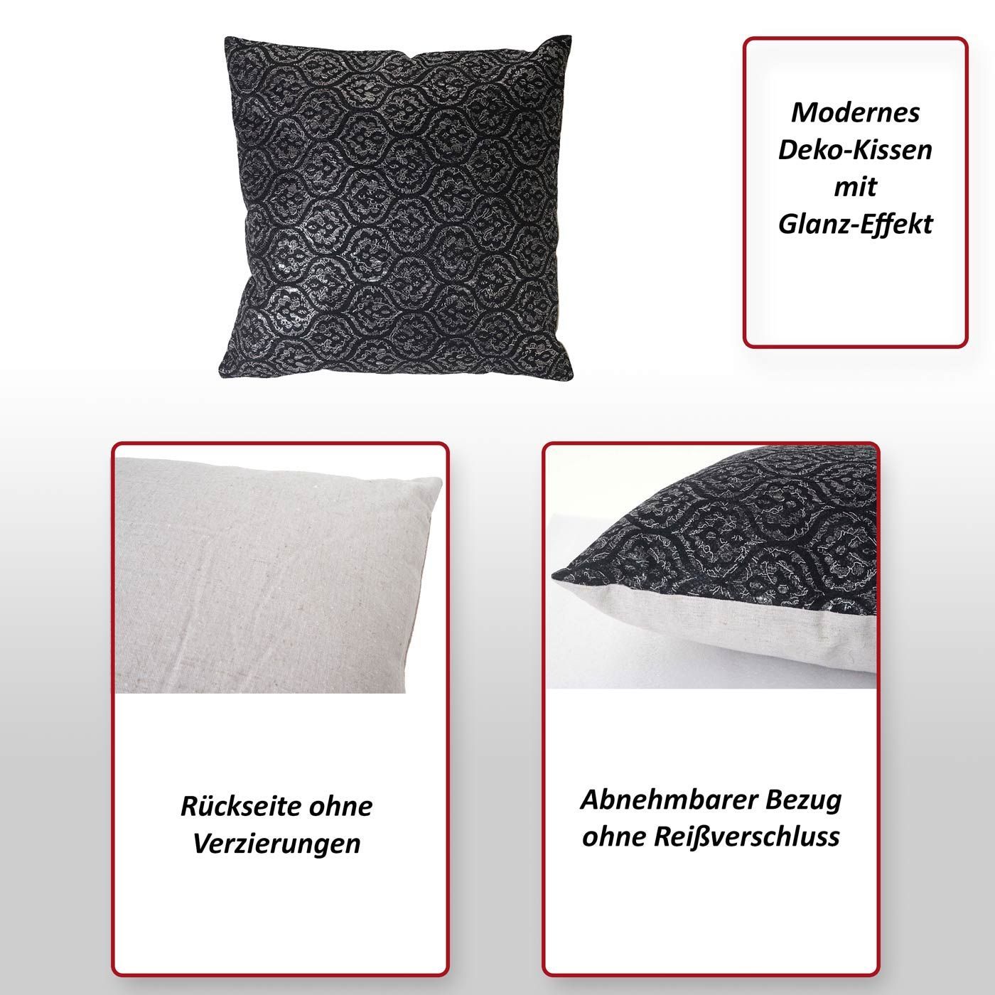 Mendler Deko-Kissen Barock, Sofakissen Zierkissen mit Füllung, schwarz Glanz-Effekt 45x45cm