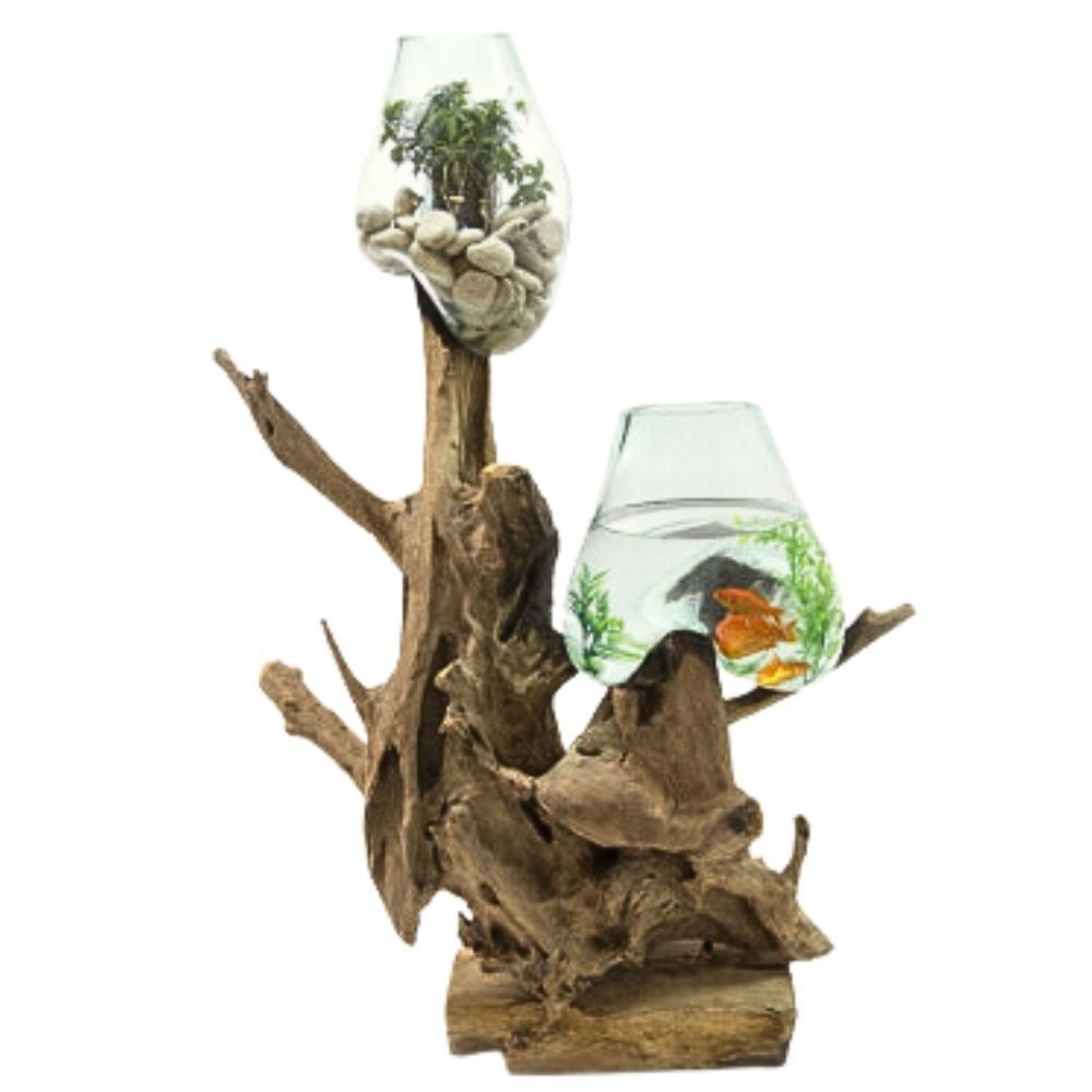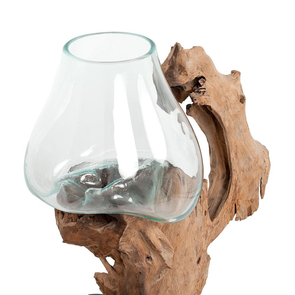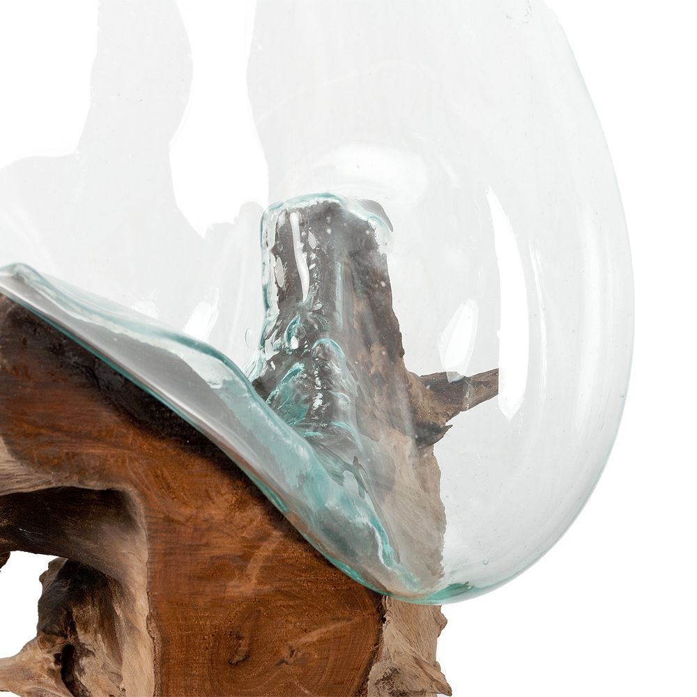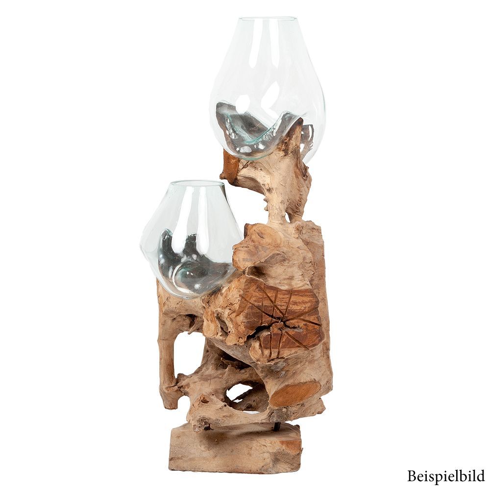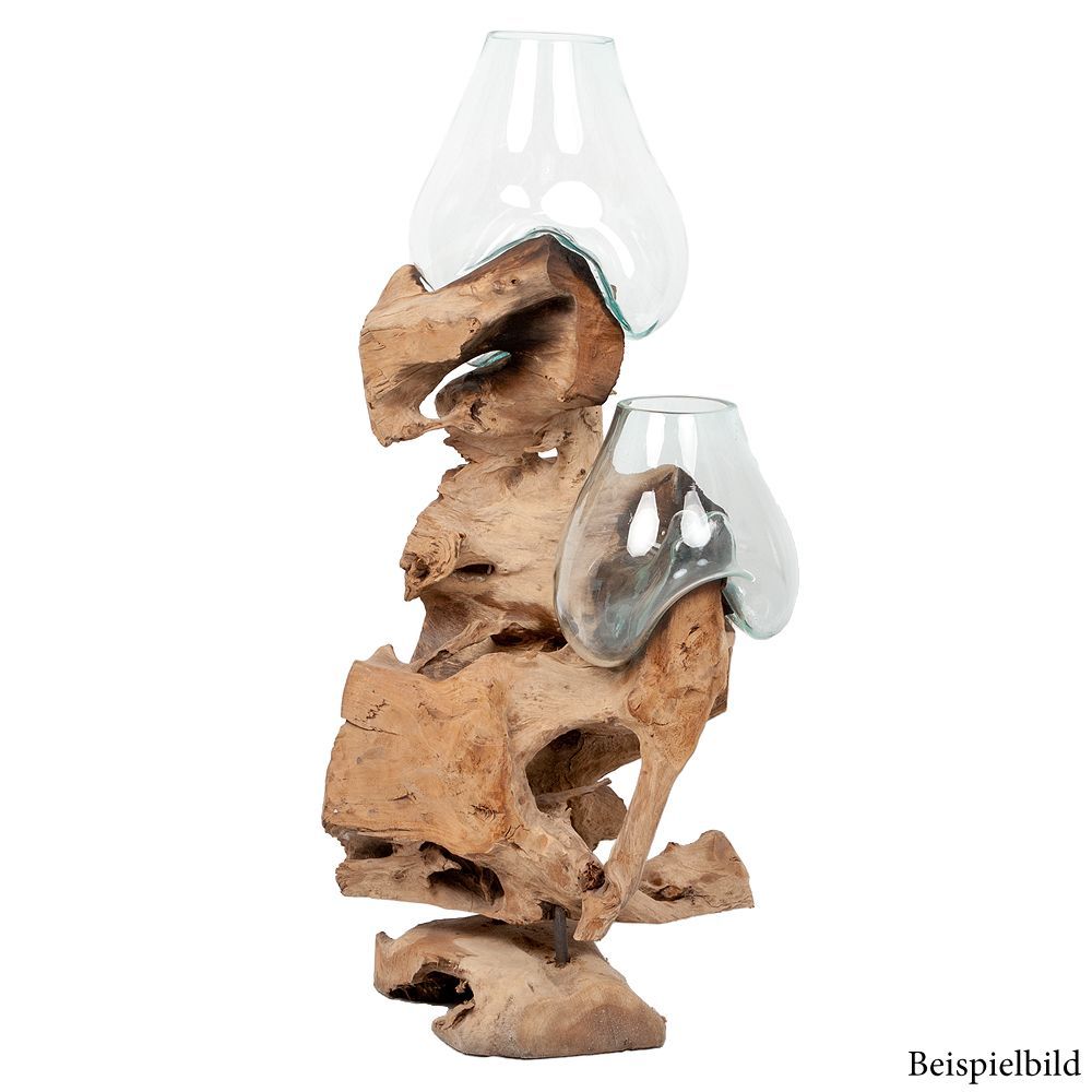 Deko-Objekt DROP-DUO ca. H100cm Teak Natural mundgeblasen Handarbeit Unikat Vase
