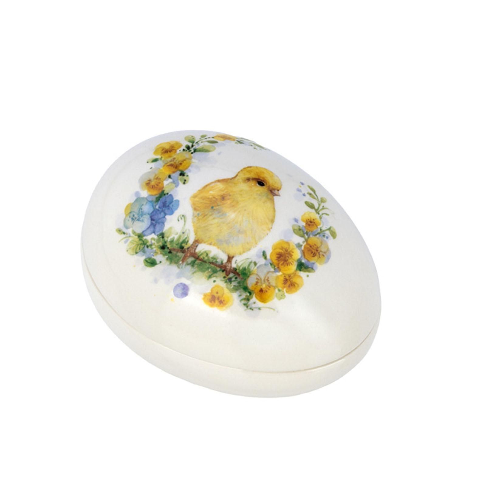 Deko Oster-Schale 13.2 x 9.8 cm mit Deckel Keramik weiß mit Blumen & Küken-Dekor