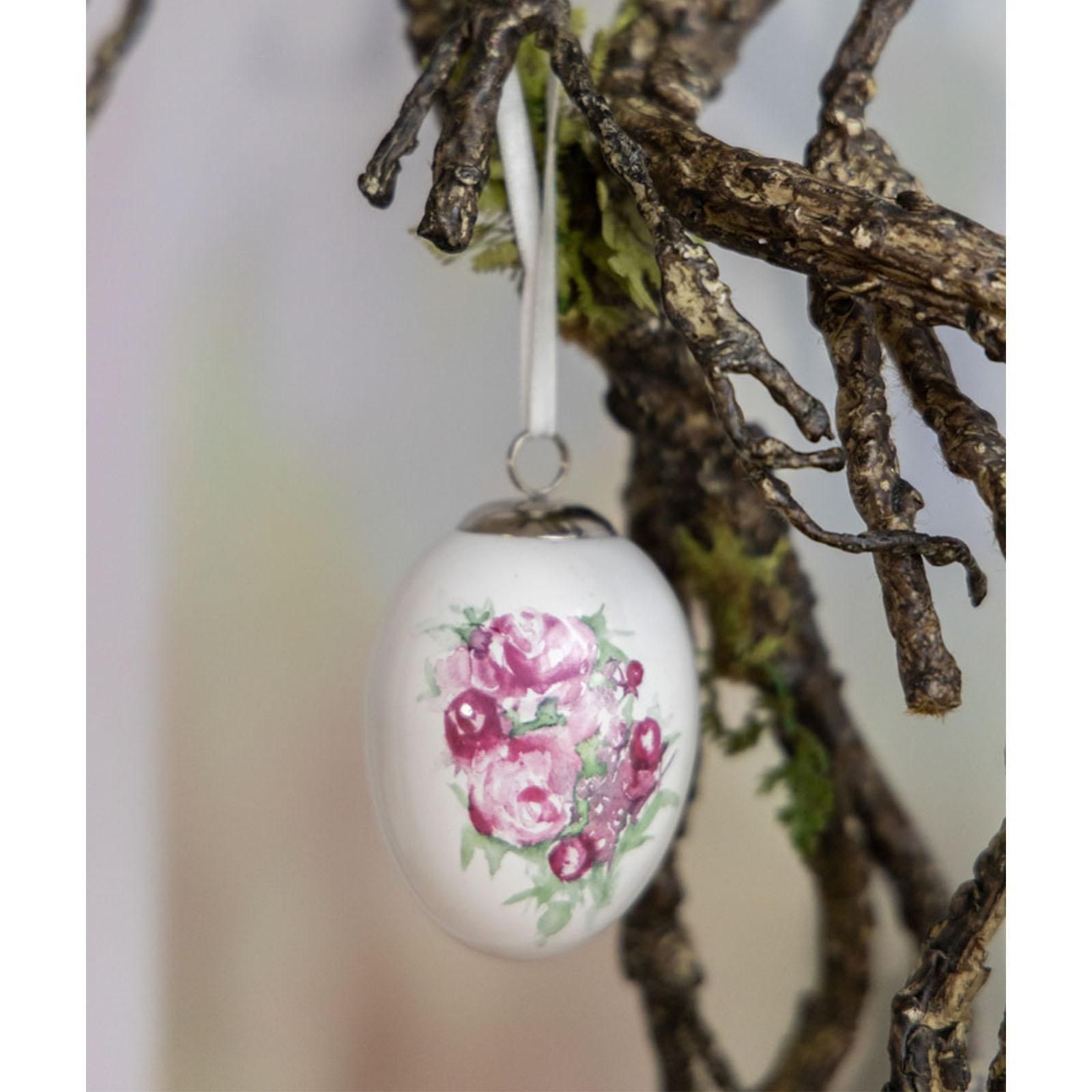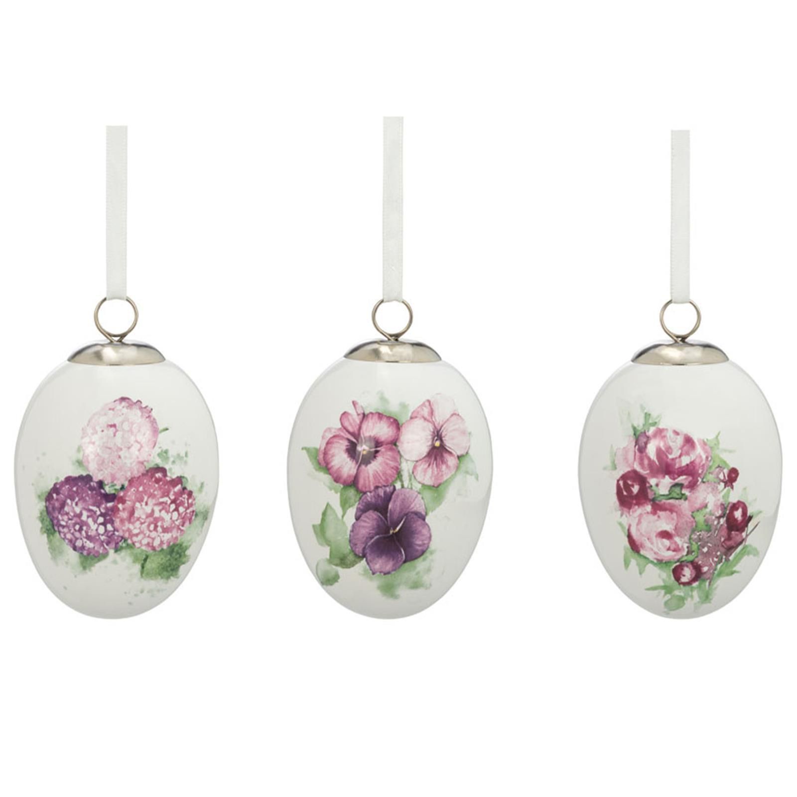 Deko Osterei Set Keramik 3-tlg. Hänge-Osterdeko Eier Blumen-Dekor zum Aufhängen