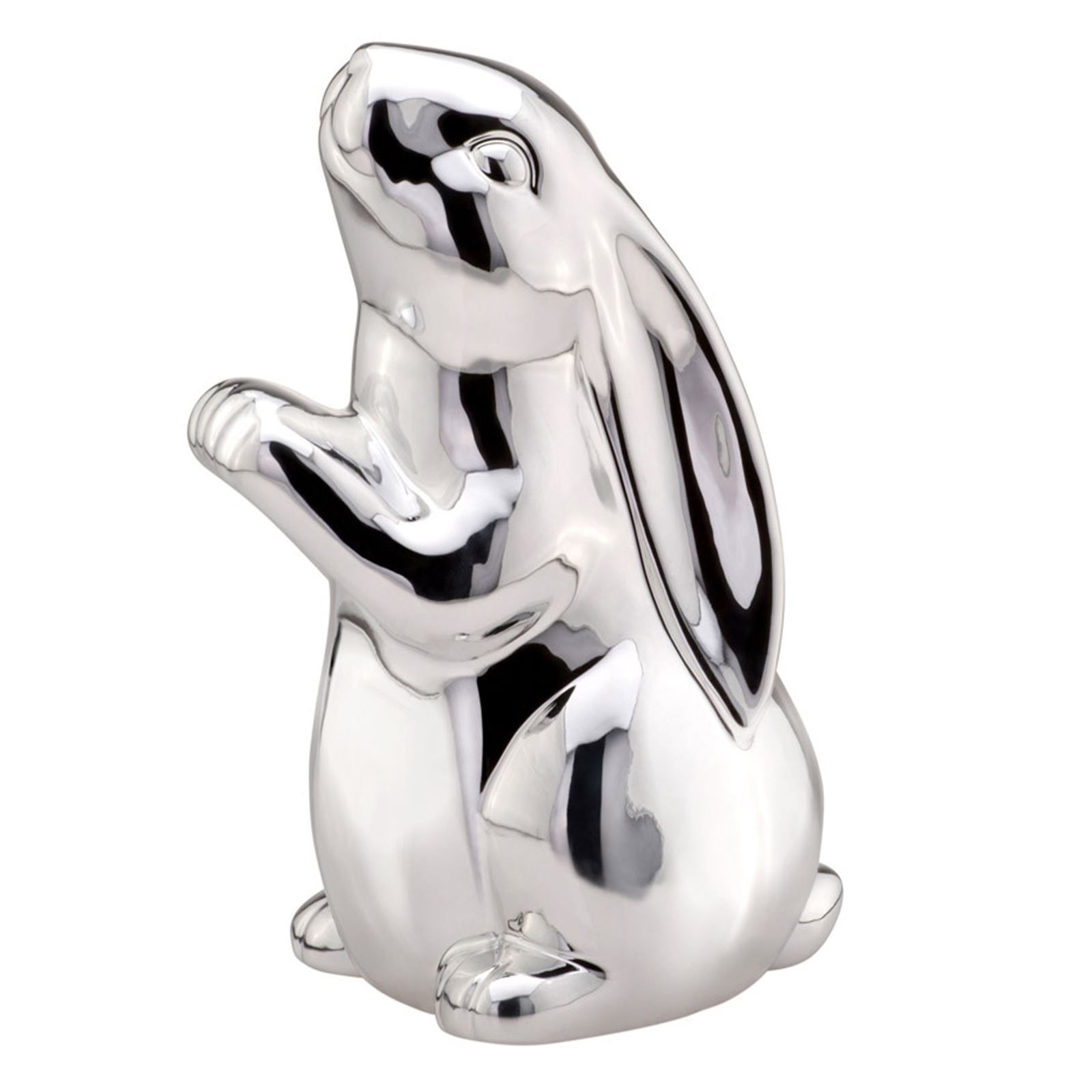 Deko Osterhase 19cm stehende Hasenfigur Porzellan Häschen Silber Wohndeko Ostern