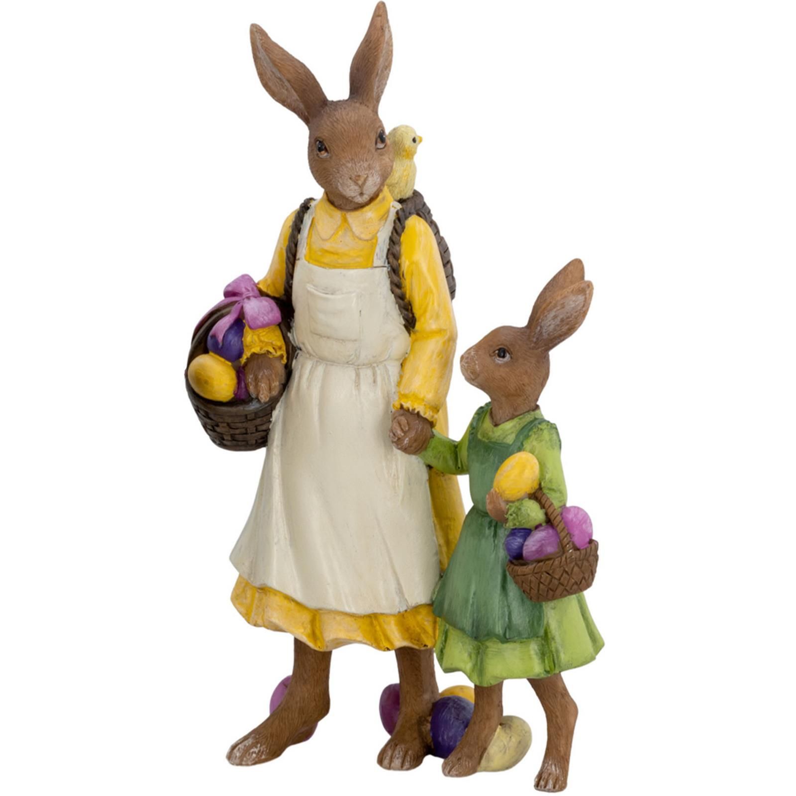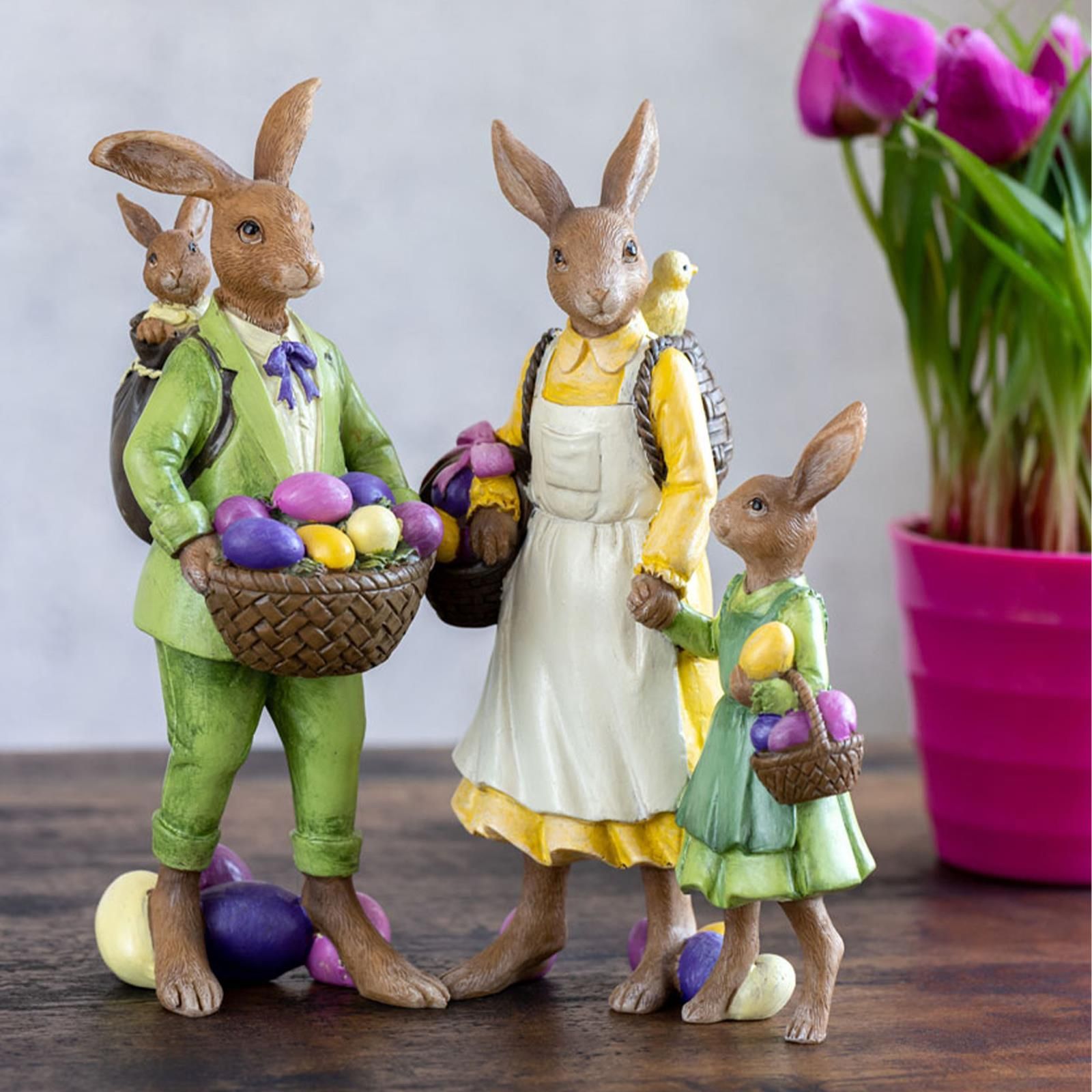 Deko Osterhasen-Familie 2-teilig Mama & Papa mit Kinder aus Polyresin