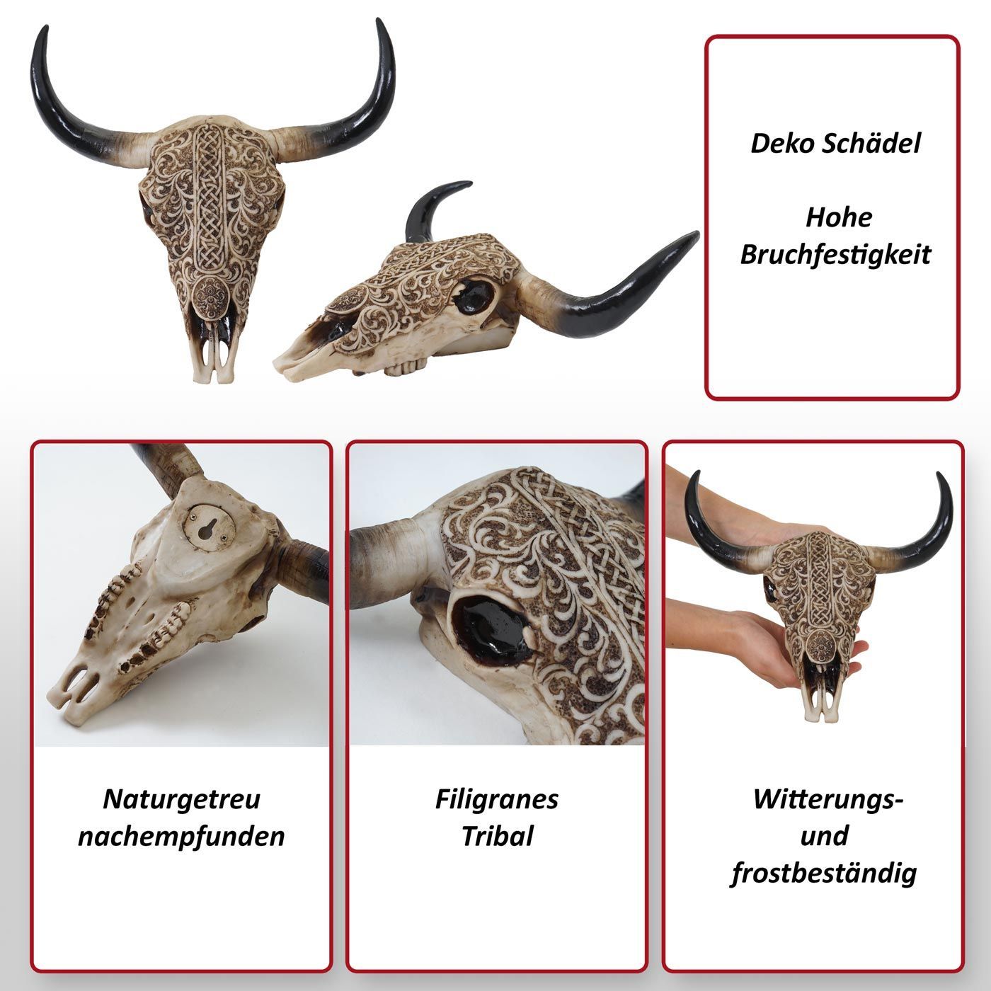 Mendler Deko Schädel 31cm HWC-C15 Polyresin Stier Kopf Trophäe mit Tribal In-/Outdoor