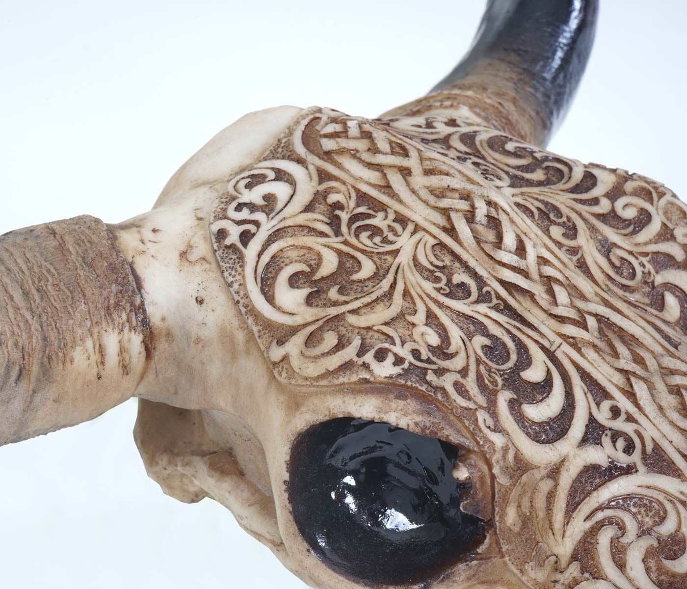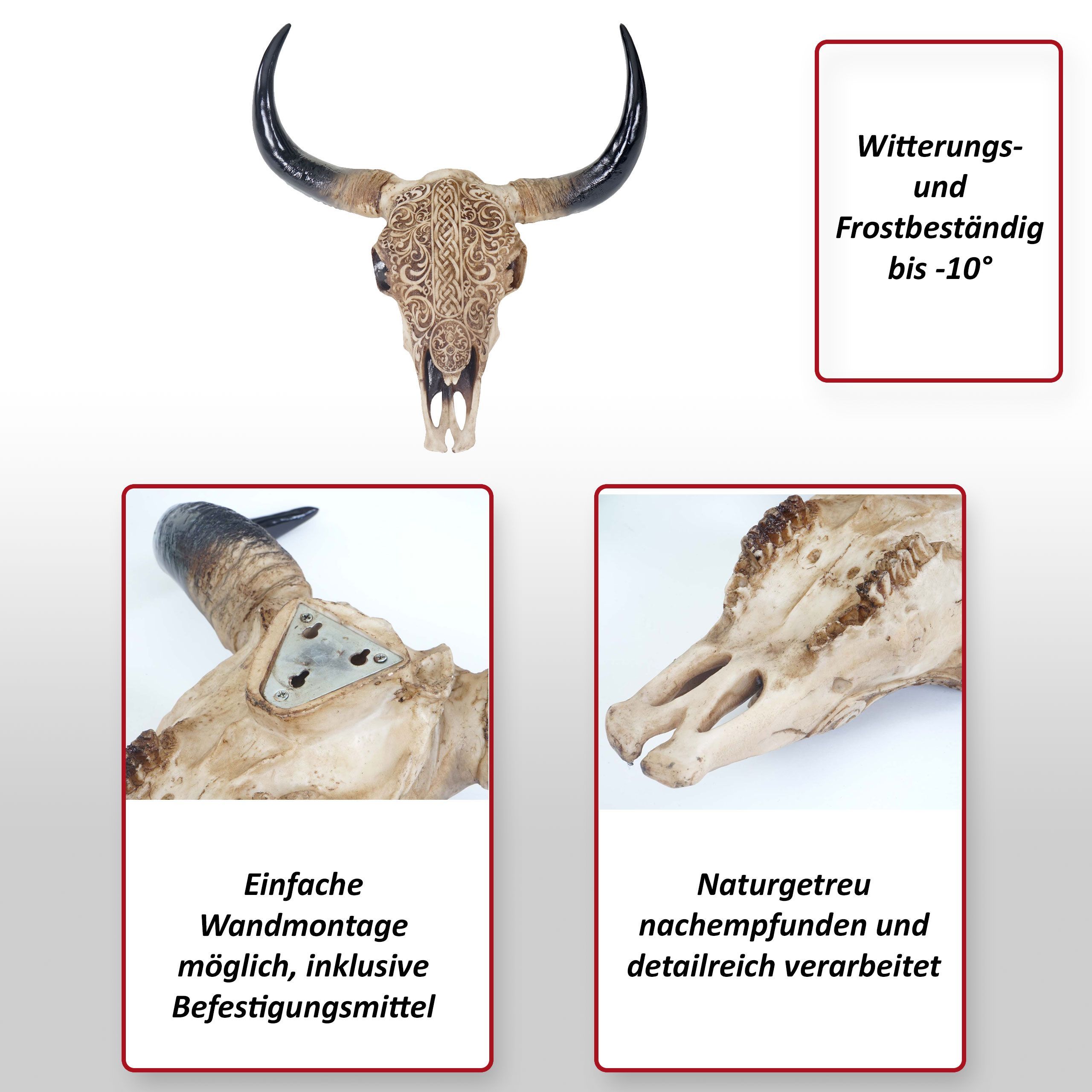 Mendler Deko Schädel 45cm, Polyresin Stier Longhorn Kopf Trophäe mit Tribal, In-/Outdoor