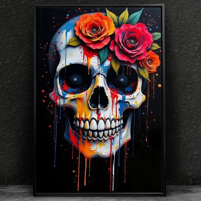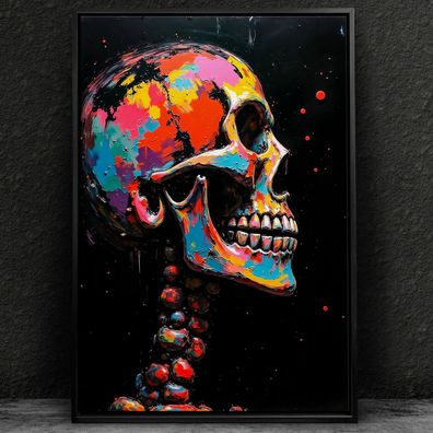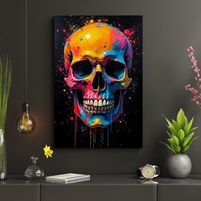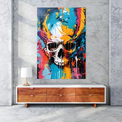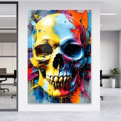 • Abstrakte Kunst - Bunte Schädel, Wandbild Leinwand, Acrylglas oder Poster Deko v4