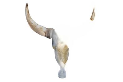 • Teak Deko-Schädel BULL mit Stativ Natural Bullenkopf Bullenschädel Stier Kopf