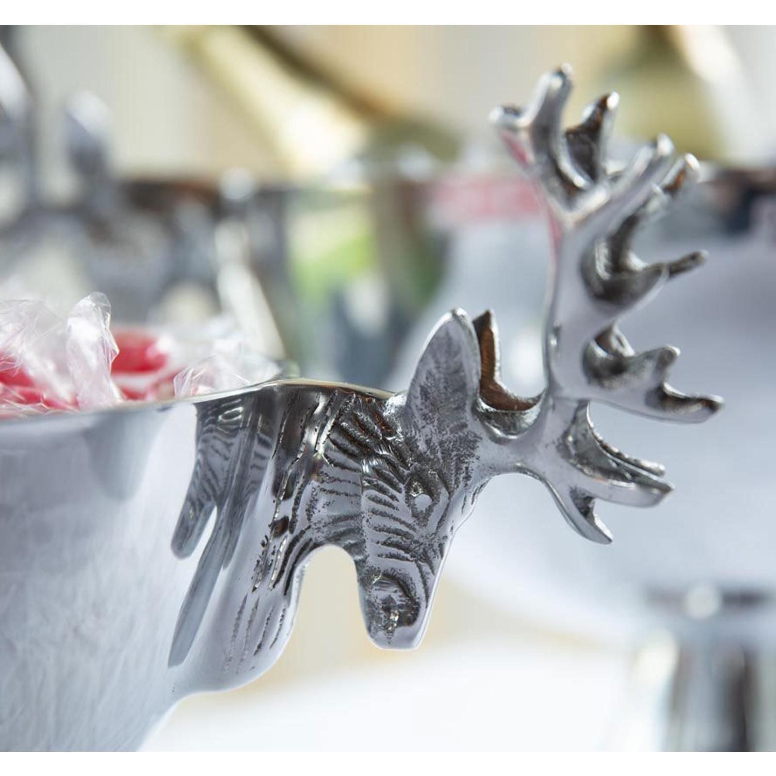 Deko Schale 19 x Ø ca. 37 cm Griffe in Hirsch-Form Aluminium runde Silberschale
