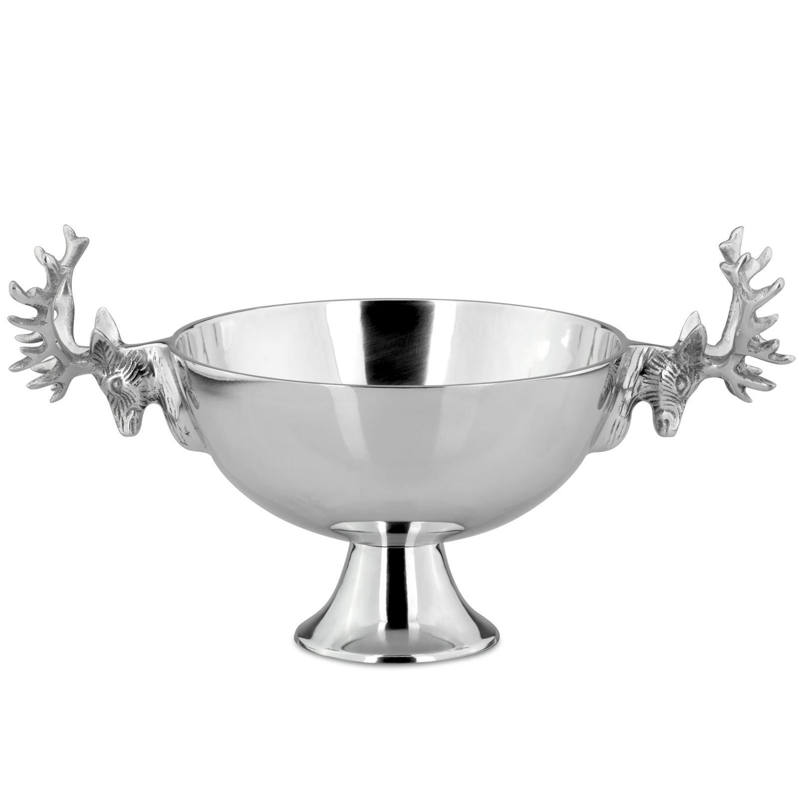 Deko Schale 23 x Ø ca. 42 cm Griffe in Hirsch-Form Aluminium runde Silberschale