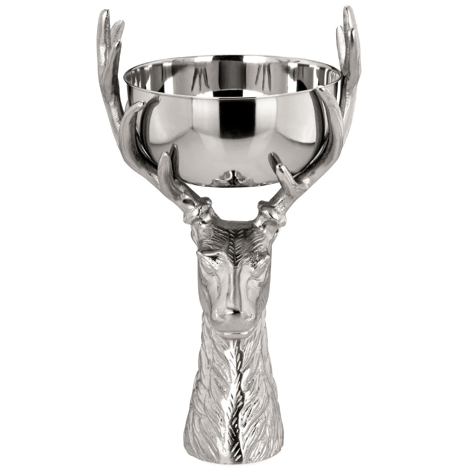 Deko Schale auf Hirschkopf 39x22cm Aluminium Edelstahl Snackschale Servierschale