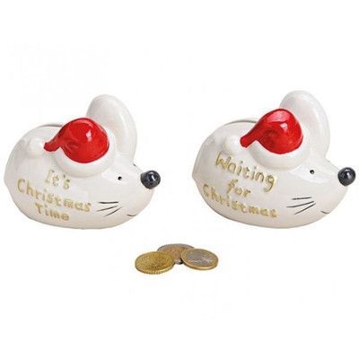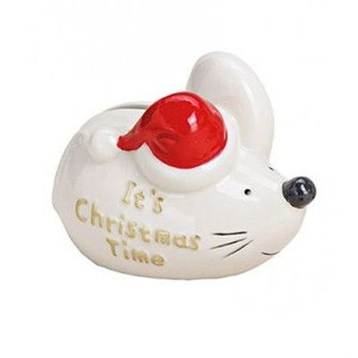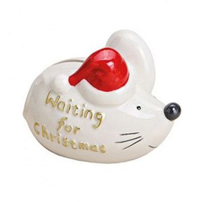 Wurm Deko Spardose Weihnachtsmaus Maus Weihnachten Porzellan weiß rot Sammeln Sparen