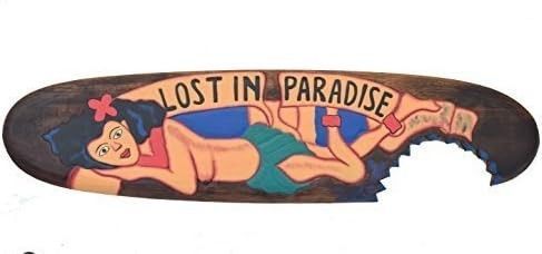 Deko Surfbrett aus Holz - Mit Vorrichtung zum Aufhängen - Länge: ca. 100cm - Text: "Paradise" - die Schrift ist erhaben/herausgearbeitet - in Handarbeit gefertigt / Handbemalt - Rückseite schwarz