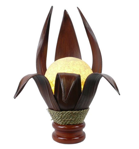 Deko-Tisch-Leuchte LOTUS KARIMA, 6 Blätter, Tischlampe aus Natur-Materialien