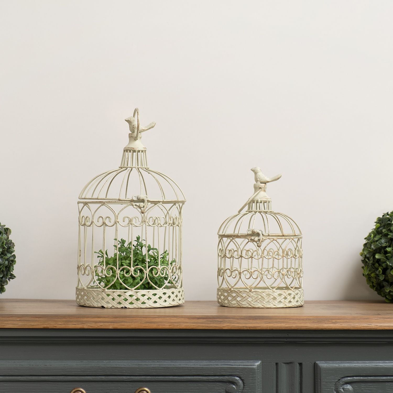 Deko-Vogelkäfig weiß rund Pflanzkäfig Dekokäfig für Blumen Kerzen Dekoration