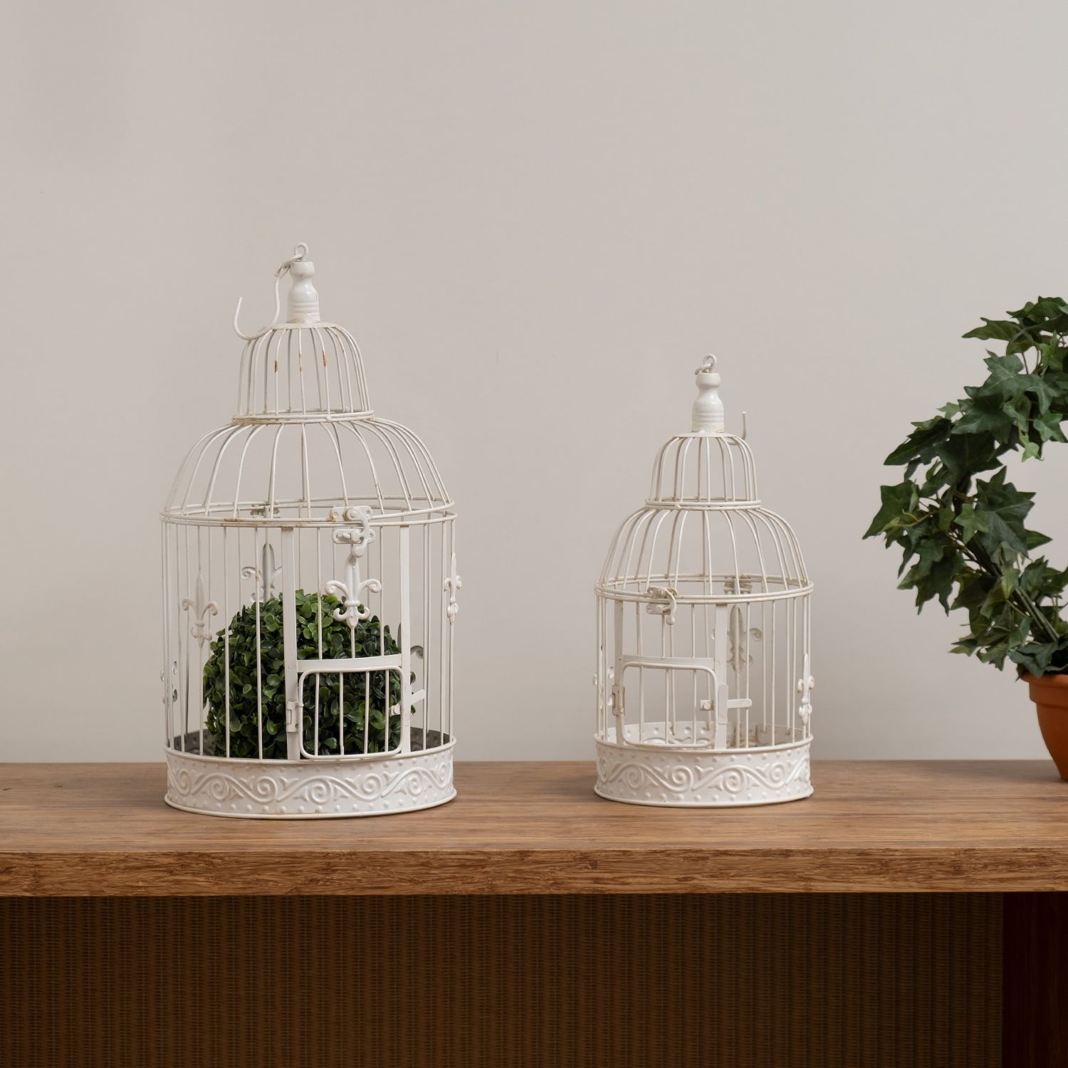 Deko-Vogelkäfig weiß rund Pflanzkäfig Dekokäfig für Blumen Kerzen Dekoration