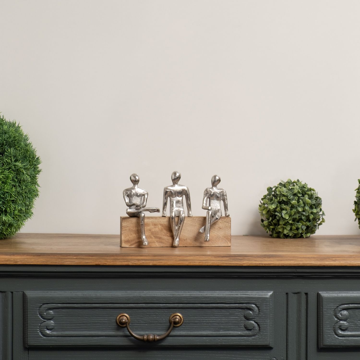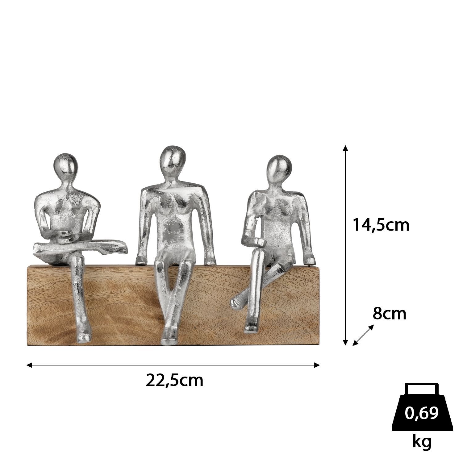 Dekofigur 3 sitzende Personen Freunde Familie gemeinsam auf Bank 22,5 x 8 x14,5
