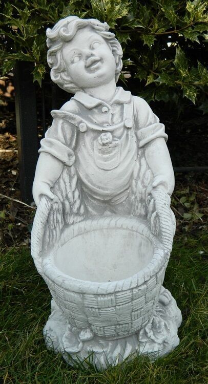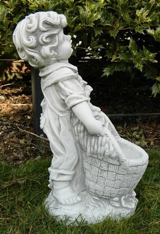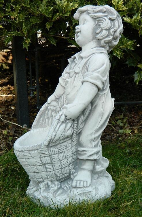 Dekofigur Deko Figur Gartenfigur Gartendeko Junge mit Pflanzkorb H 45 cm Beton