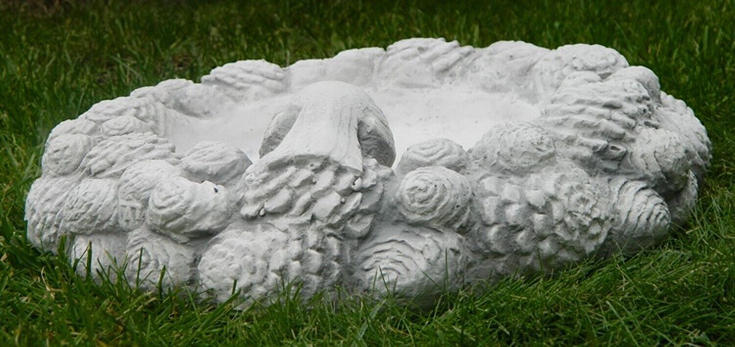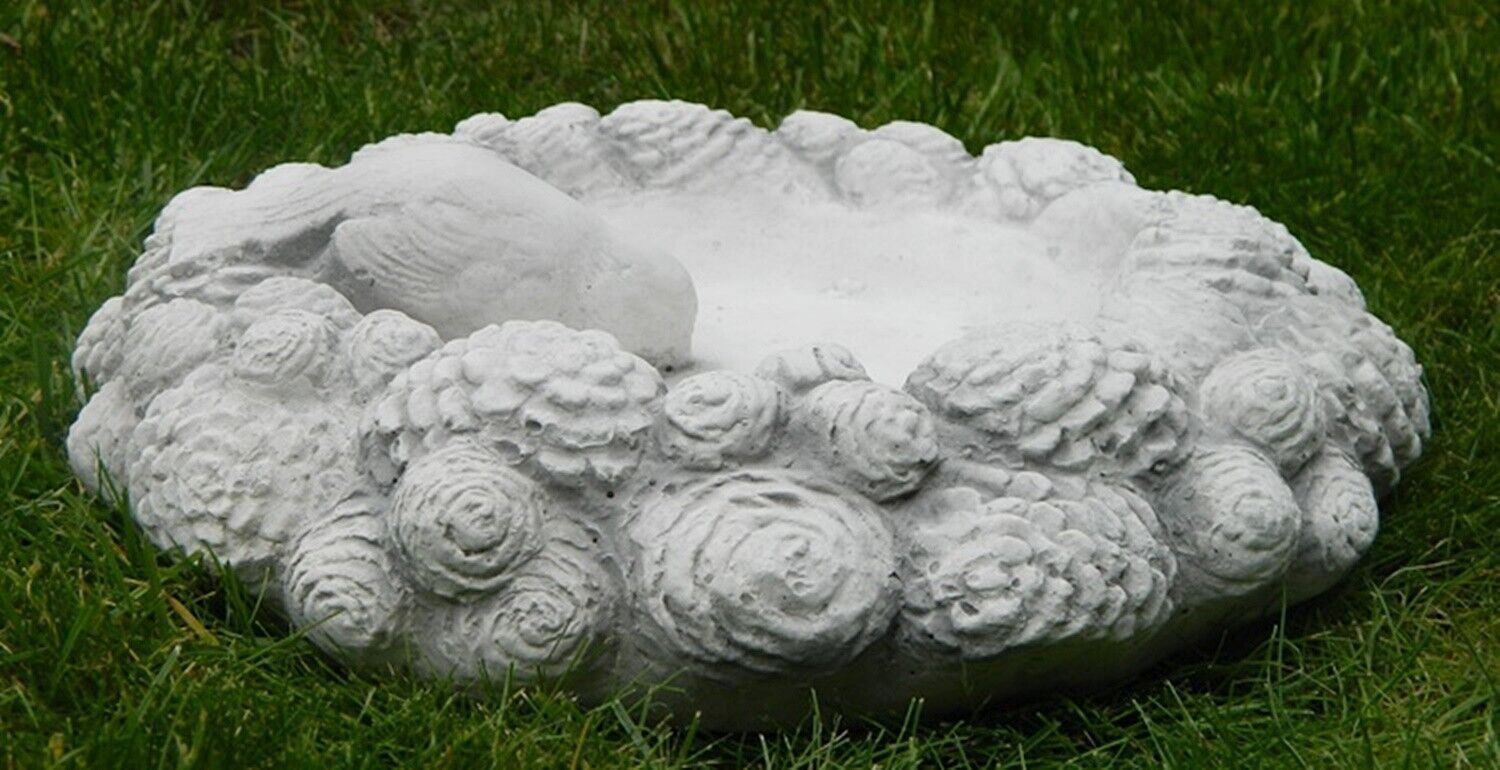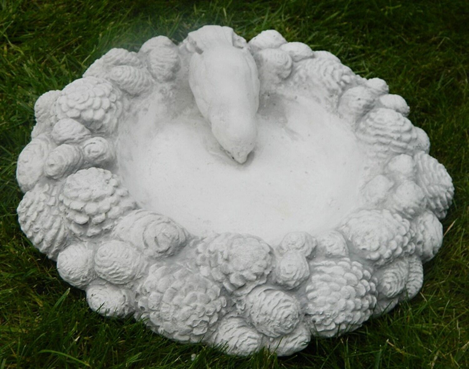 Dekofigur Deko Figur Tierfigur Vogeltränke mit Vogel und Zäpfen H 6 cm aus Beton