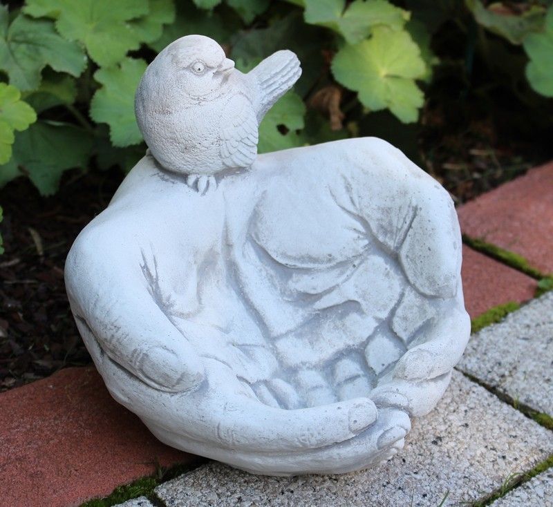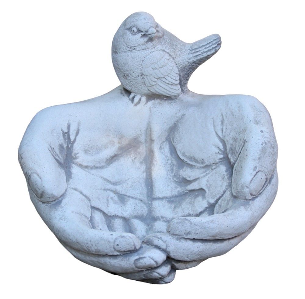 Dekofigur Deko Figur Vogeltränke Motiv Hände mit Vogel Höhe 18 cm aus Beton